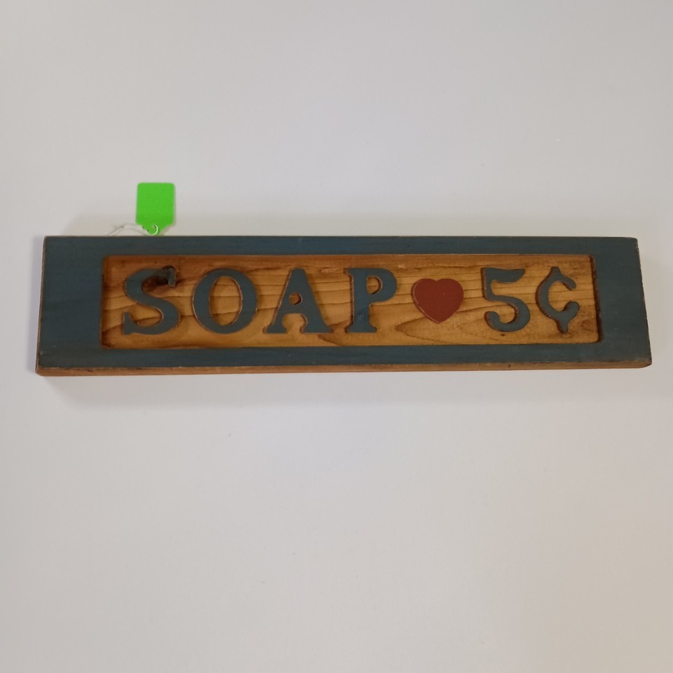 Country Farmhouse Wooden Sign Soap 5¢ Blue Red Rustic Primitive 18" x 4"