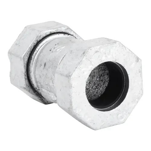 Constructed from malleable iron and fully galvanized, the coupling offers excellent corrosion resistance and long-term durability in wet and high-moisture environments. The galvanized finish protects against rust and extends service life, whether used indoors or in exposed utility areas. With a maximum pressure rating of 300 psi and a temperature limit of 150 F, it performs reliably in standard water supply lines and hydronic systems.