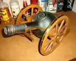 COURVOISIER BRASS WOOD CANNON LOADED WITH 3000 ML (3 LITER) VSOP COGNAC BOTTLE (empty of course). LIKE NEW CONDITION! Over 40 years old. Brass overlays to the wheels and frame. Measures 13" long X 9.5" high X 9" wide. Shipping is expensive because of the weight and the large size of box required. Four 750ml or 3 1 liter bottles will fill this unit up, and then you can just tip the bottle to serve the best with class! Shipping includes insurance.