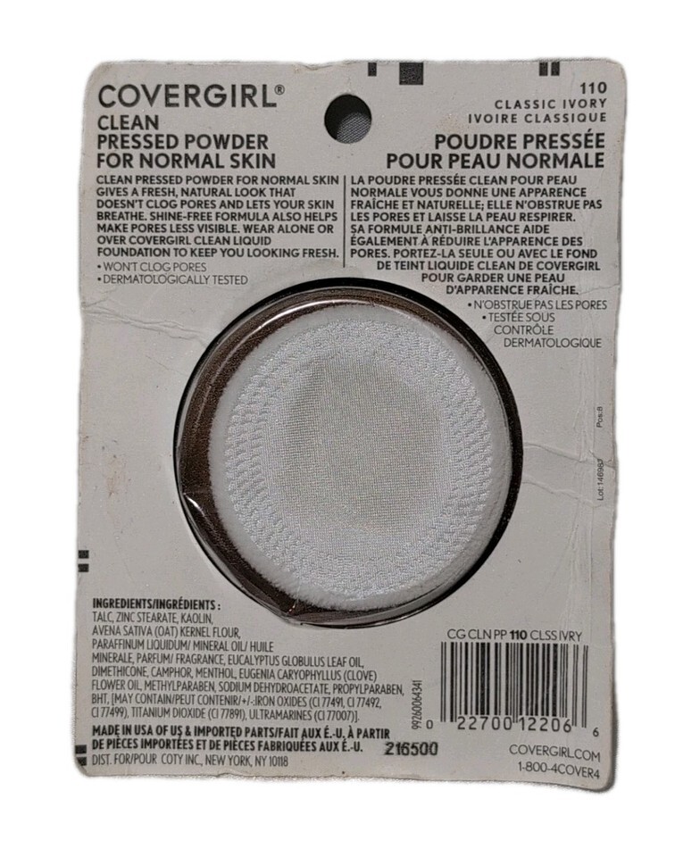 - Covergirl Clean Pressed Powder, Classic Ivory #110 Talc Compact w/ mirror