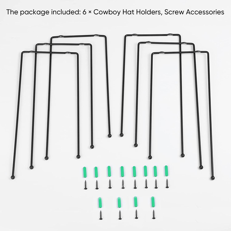 Package: 6 Cowboy Hat Holder (14.4 11.8 6") + screw accessories