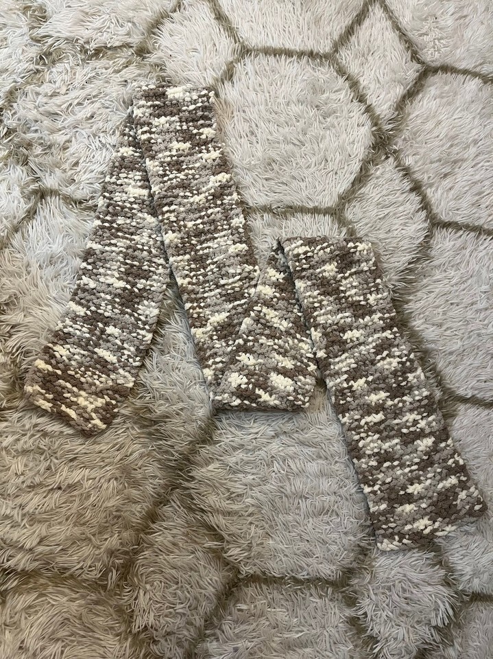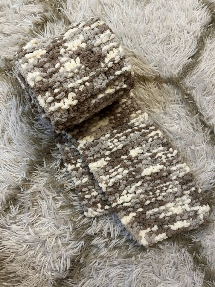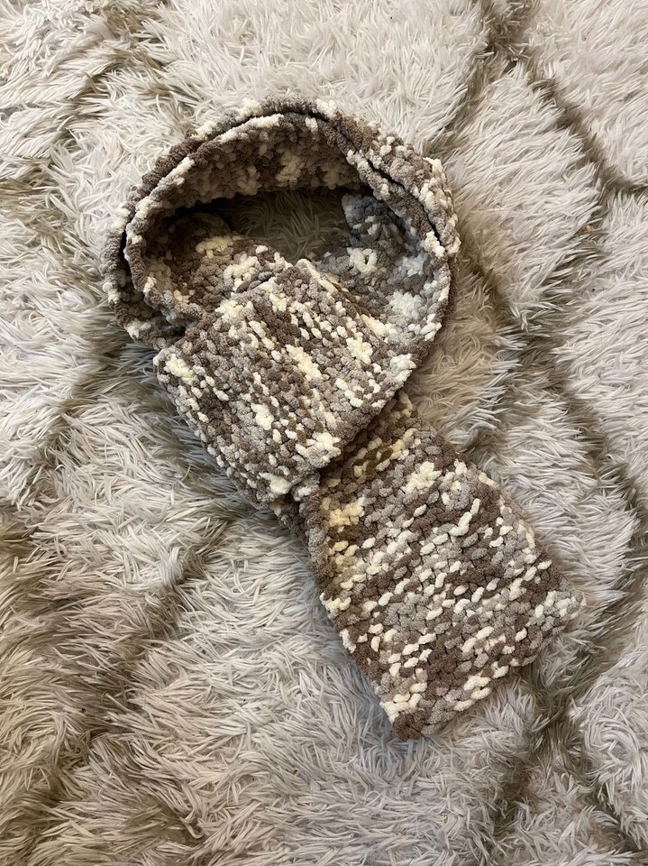 Wrap yourself in warmth and style with our hand-knit cozy mottled scarf. Featuring a beautiful blend of brown, white, and grey tones, this scarf is the perfect winter accessory to complement any outfit while keeping you snug and comfortable.