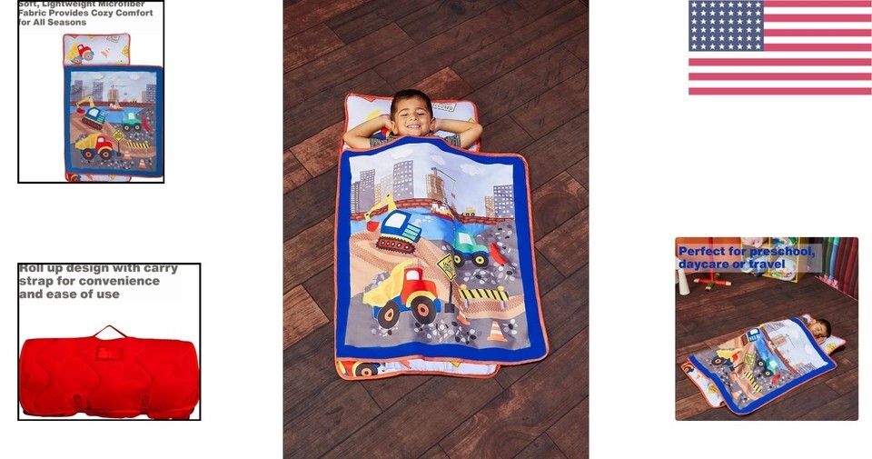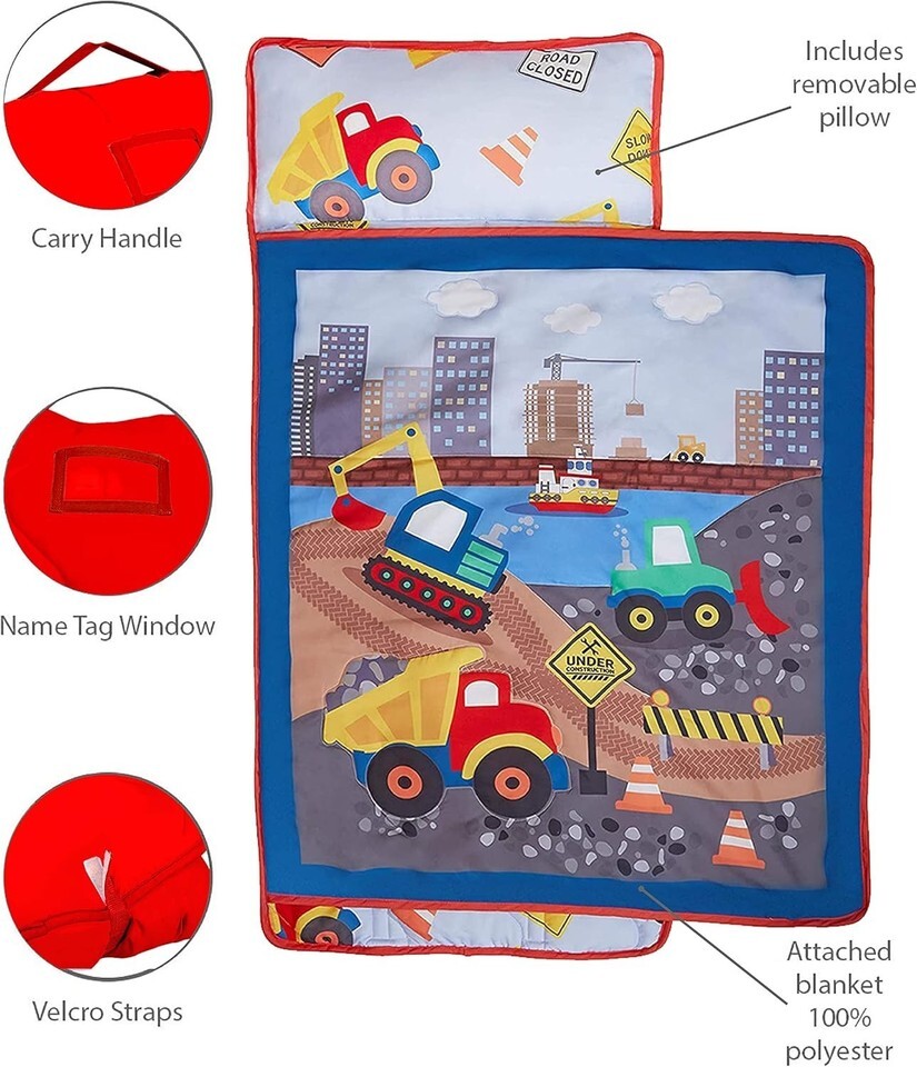 - Cozy Toddler Nap Mat with Removable Pillow & Carry Handle - Under Construction