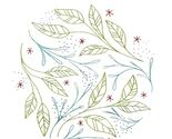 Leaf Dance design features a swirl of dancing leafs in blue and green.