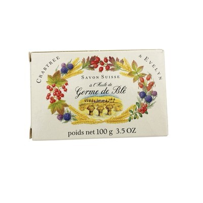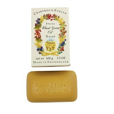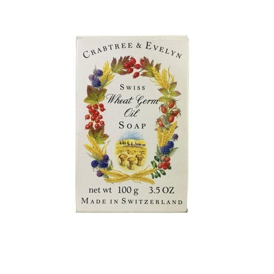 One new-old-stock 3.5 oz Crabtree Evelyn Swiss Wheat Germ Oil bar soap in box. 0.3% wheat germ oil. Made in Switzerland. Box has some light shelf wear. From a smoke-free home. Ships next day!