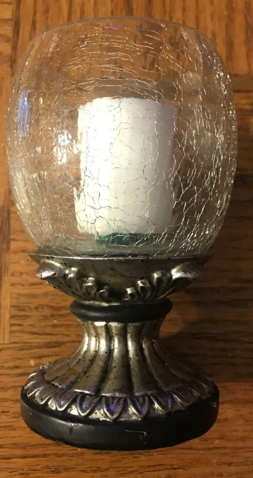 Cracked Glass Candle Holder-RARE VINTAGE-SHIPS N 24 HOURS