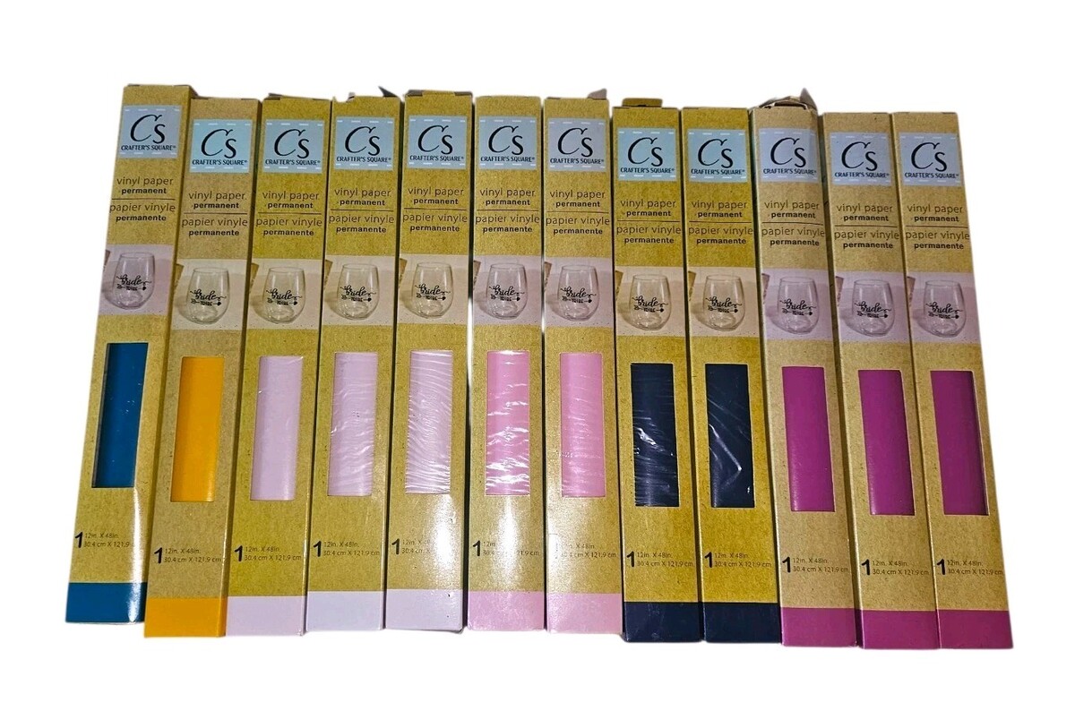 - Crafter's Square Permanent Vinyl Paper Sticker Back 12" x 48" Rolls Lot Of 12