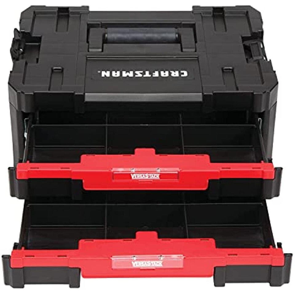 The CRAFTSMAN VERSASTACK? system is a flexible platform that allows for many different combinations based on the user needs. This unit features two drawers and can be stacked on or under other VERSASTACK? components.