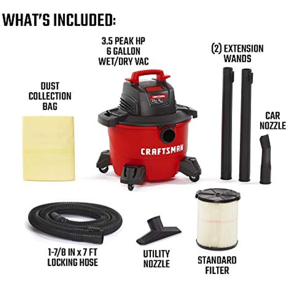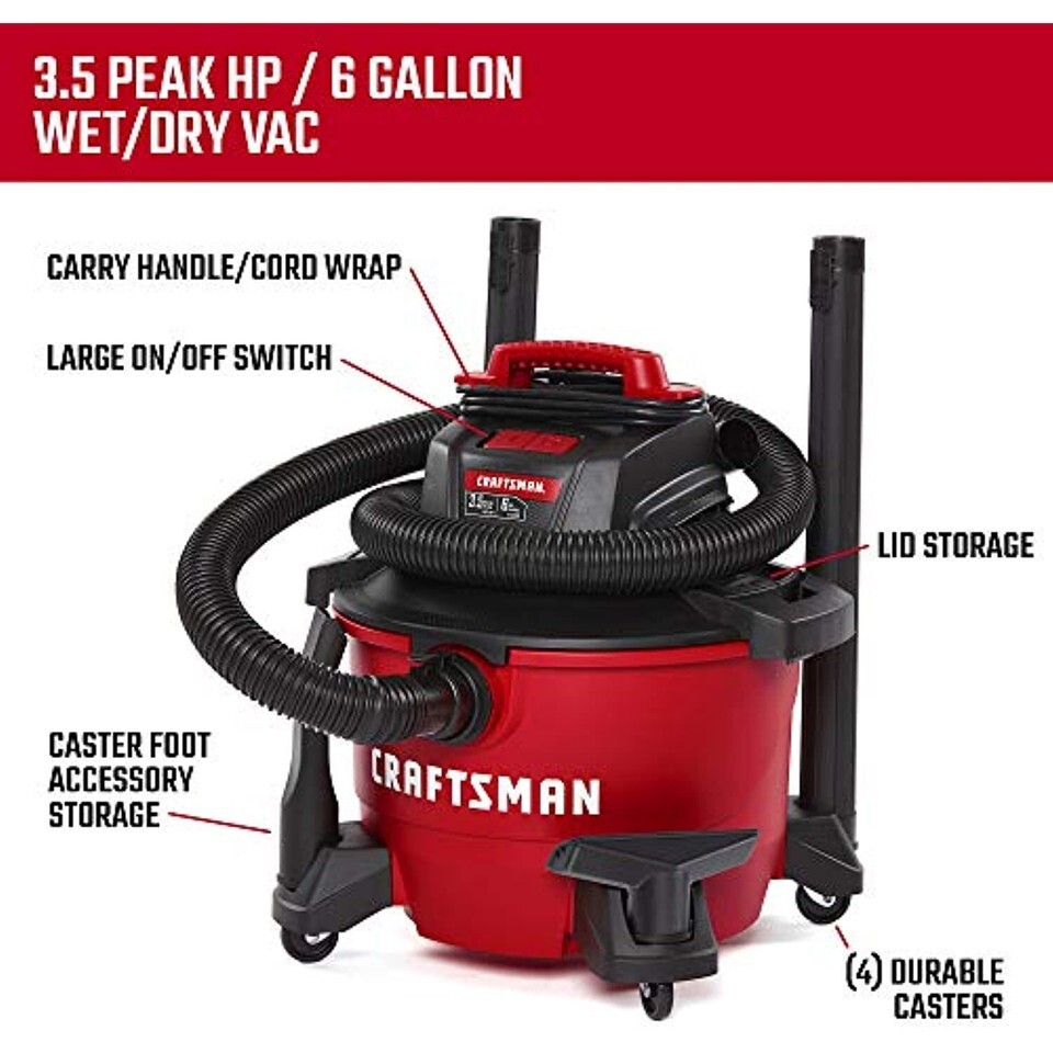 - CRAFTSMAN CMXEVBE17584 6 Gallon 3.5 Peak HP Wet/Dry Vac, Portable Shop Vacuum