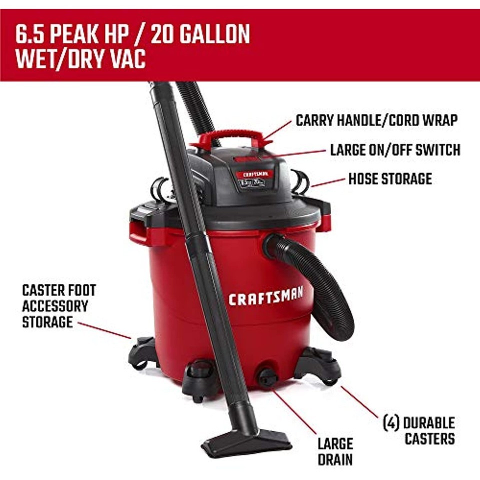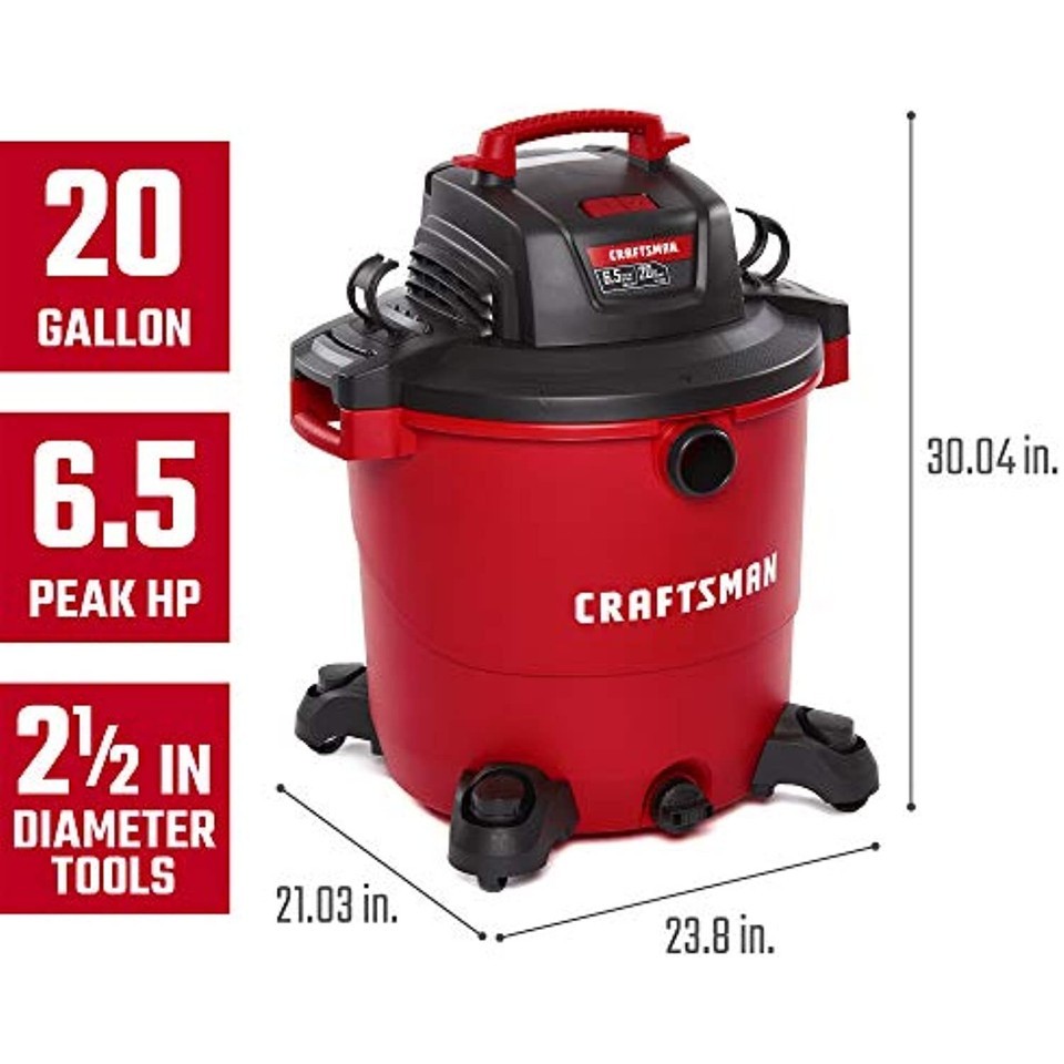 - CRAFTSMAN CMXEVBE17596 20 Gallon 6.5 Peak HP Wet/Dry Vac, Heavy-Duty Shop Vacuum