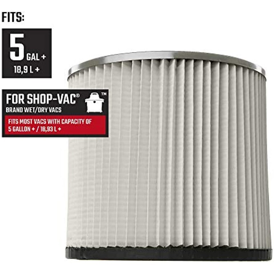 The CRAFTSMAN Standard Cartridge Filter for wet/dry vacs is designed to be a replacement filter for most Shop-Vac brand vacs. It is designed for pick-up of everything from dirt and sawdust to jobsite debris or general build-up in your car or truck. For added convenience, the filter material can be washed with water and reused. To ensure maximum performance of your shop vacuum cleaner, replace wet dry vac filters regularly.