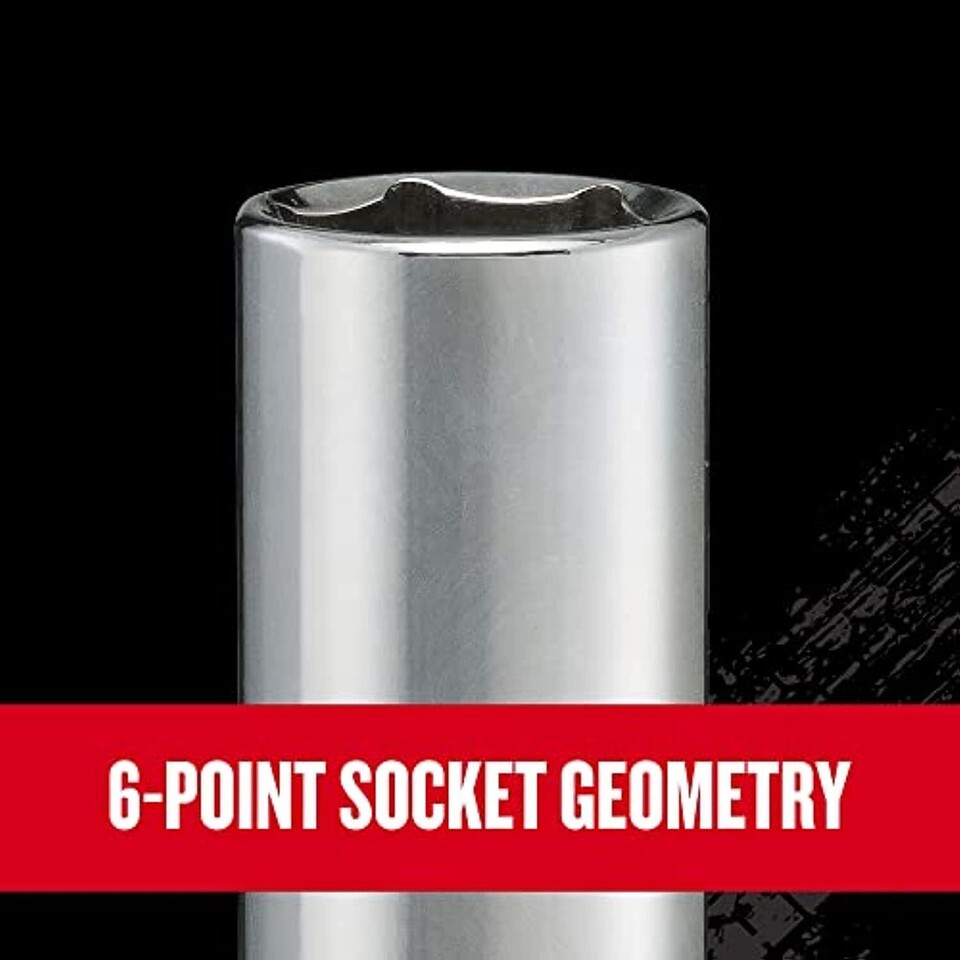 Manufactured for pro-grade performance, the V-Series 1/4 in. Drive SAE Deep 6-Point Socket Set (10 pc.) is perfect for fastener gripping applications. Quickly store and stay organized with the magnetic rail and get high torque with the sockets 6-point socket geometry that enhances rotating force onto the flats of fasteners. A chamfered, tapered tip design makes rapid socket-to-fastener engagement possible to help you tackle more work in less time.