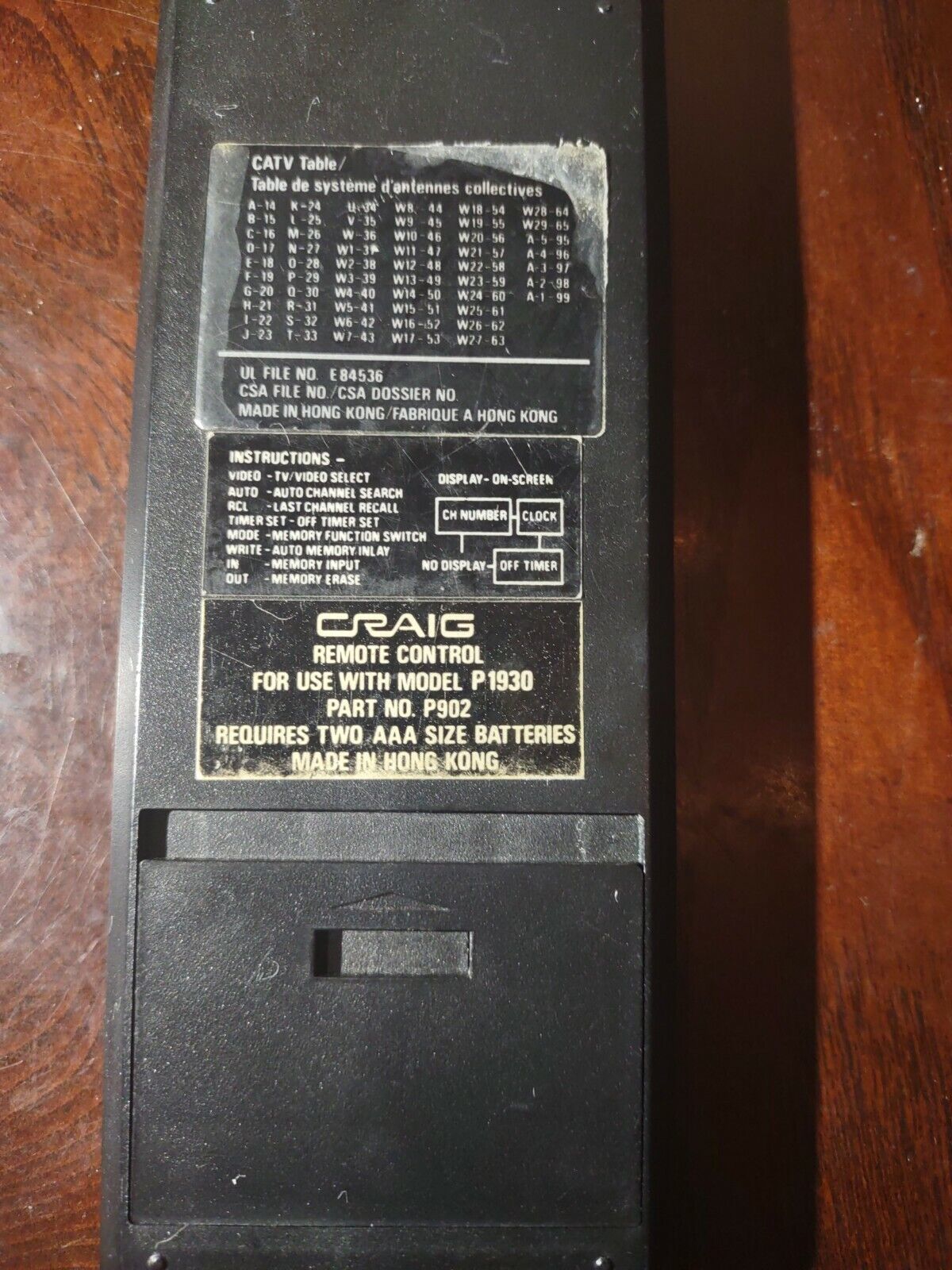Craig Full Function Remote Control model P1930. Inventory box number 5640 bag 106