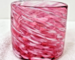 - Cranberry Pink White Speckled Mouth Blown Glass Cup Vessel 3 1/4 Tall x 3 3/8 Wi