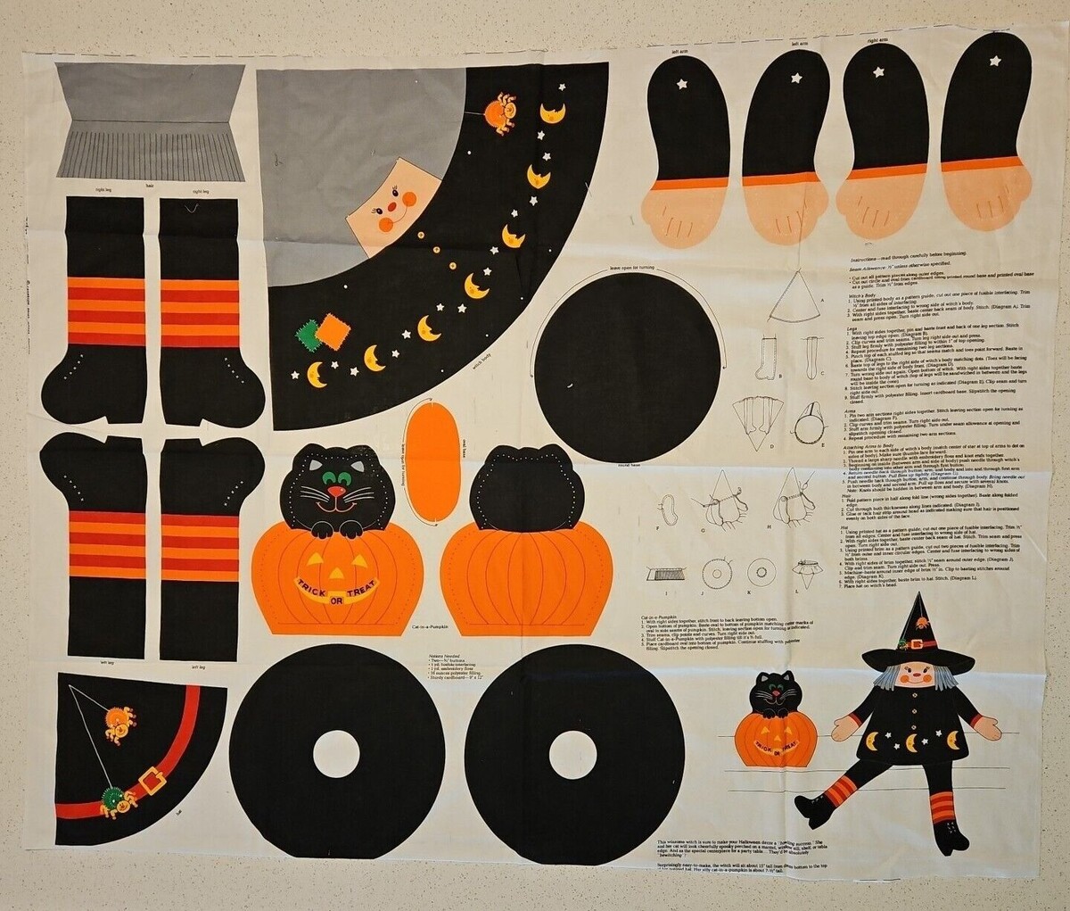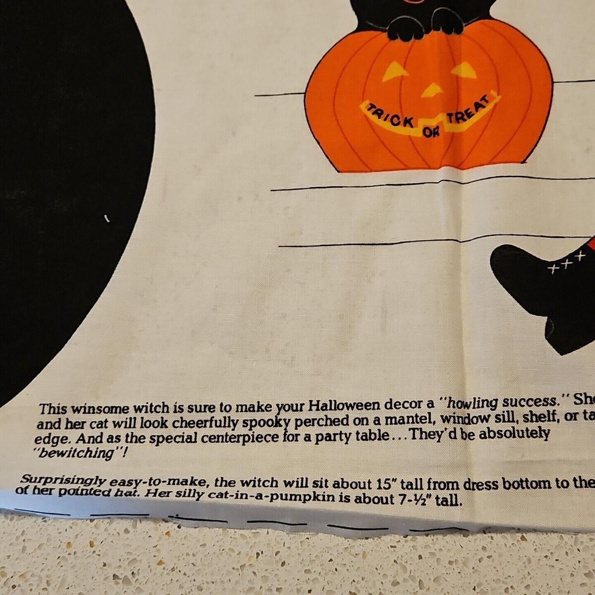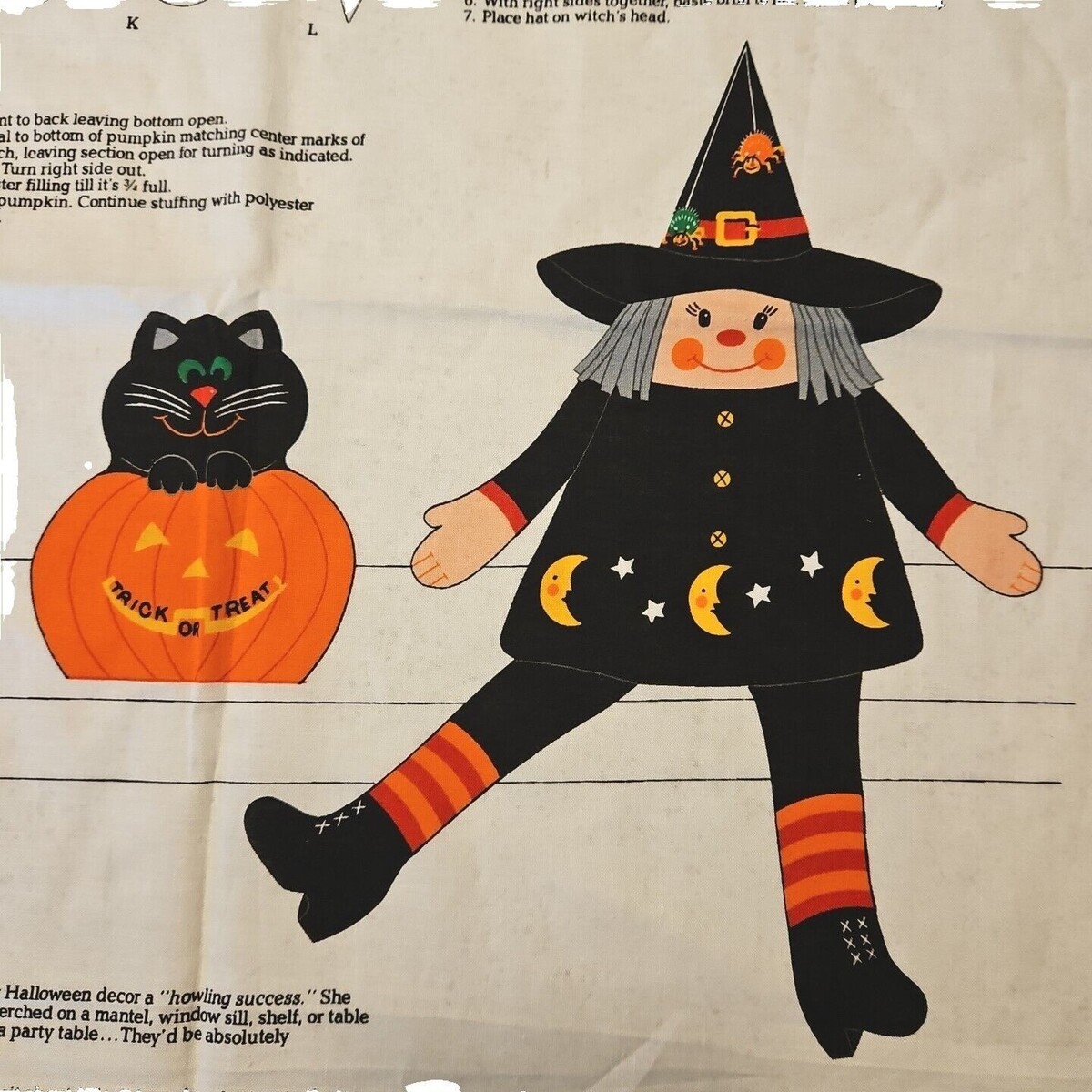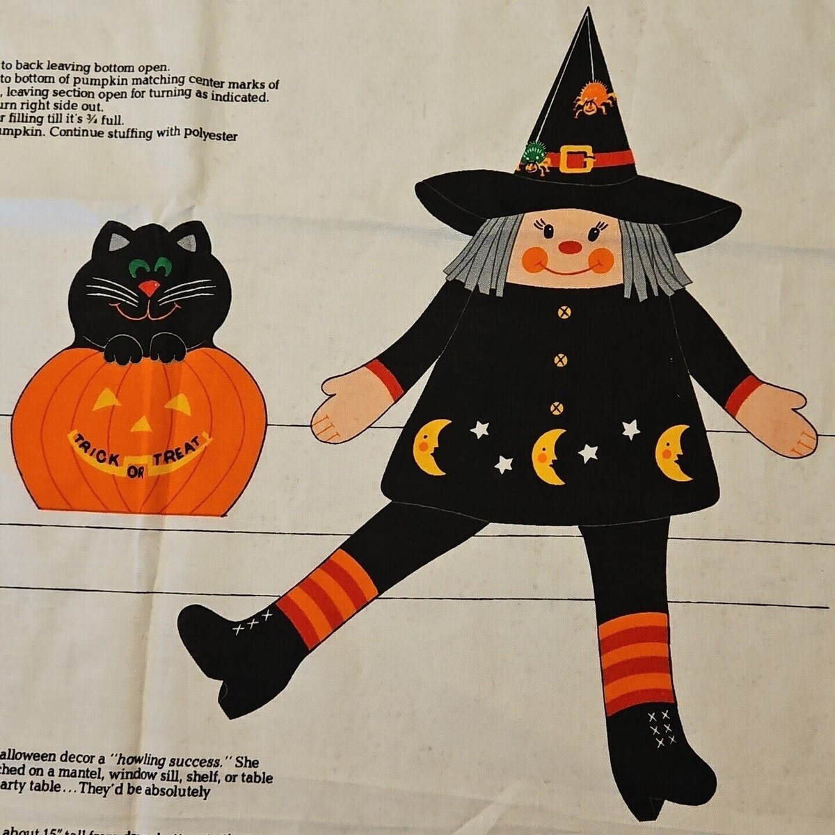 - Cranston Halloween Shelf Sitter Witch Cat in Pumpkin Cut and Stuff Fabric Panel
