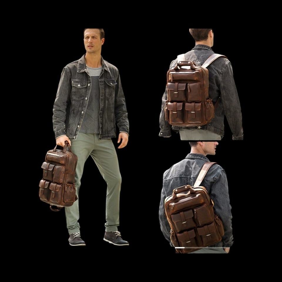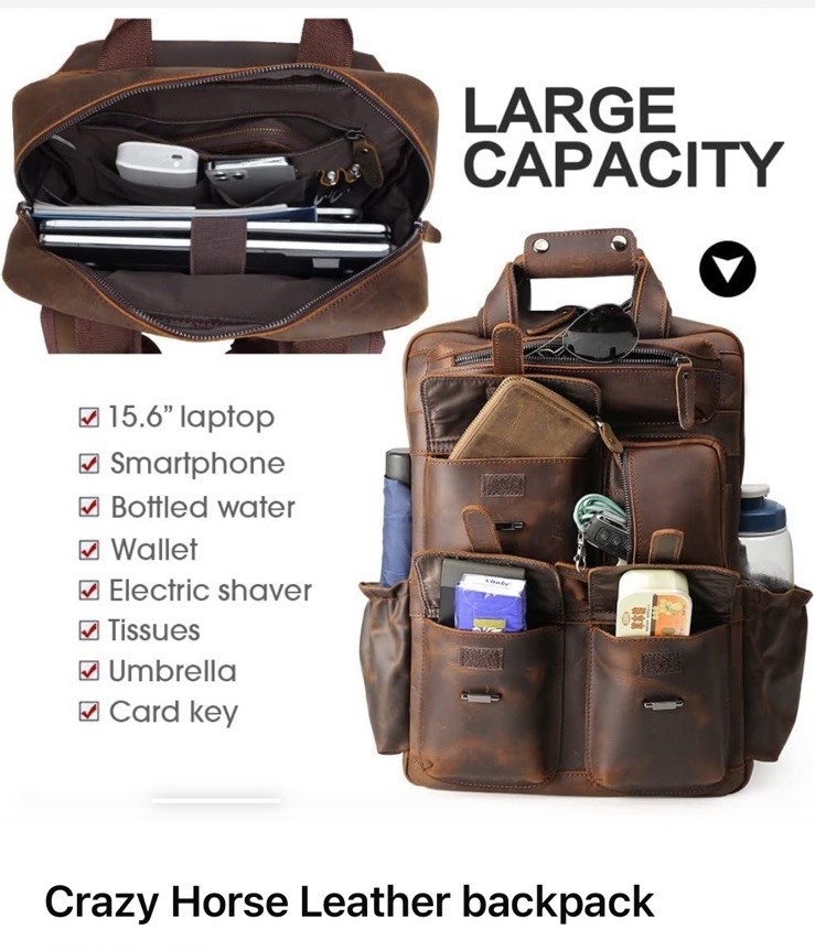 - Crazy Horse Leather Backpack Men Laptop Backpack Handmade Travel Backpack