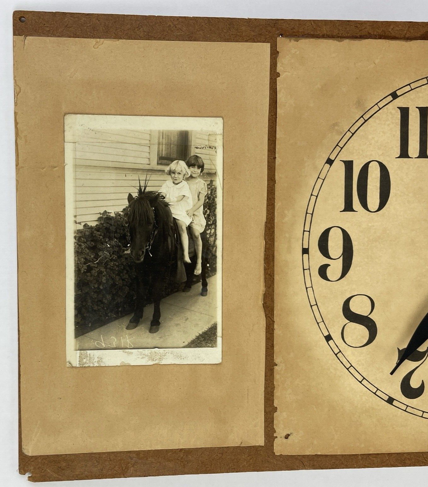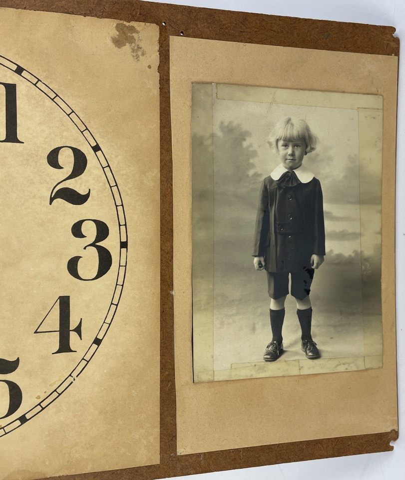 Vintage Creepy Hanging Wall Clock By WOOD WOULD Inc. California Antique Children Photos 1 of a Kind Piece - LOOK