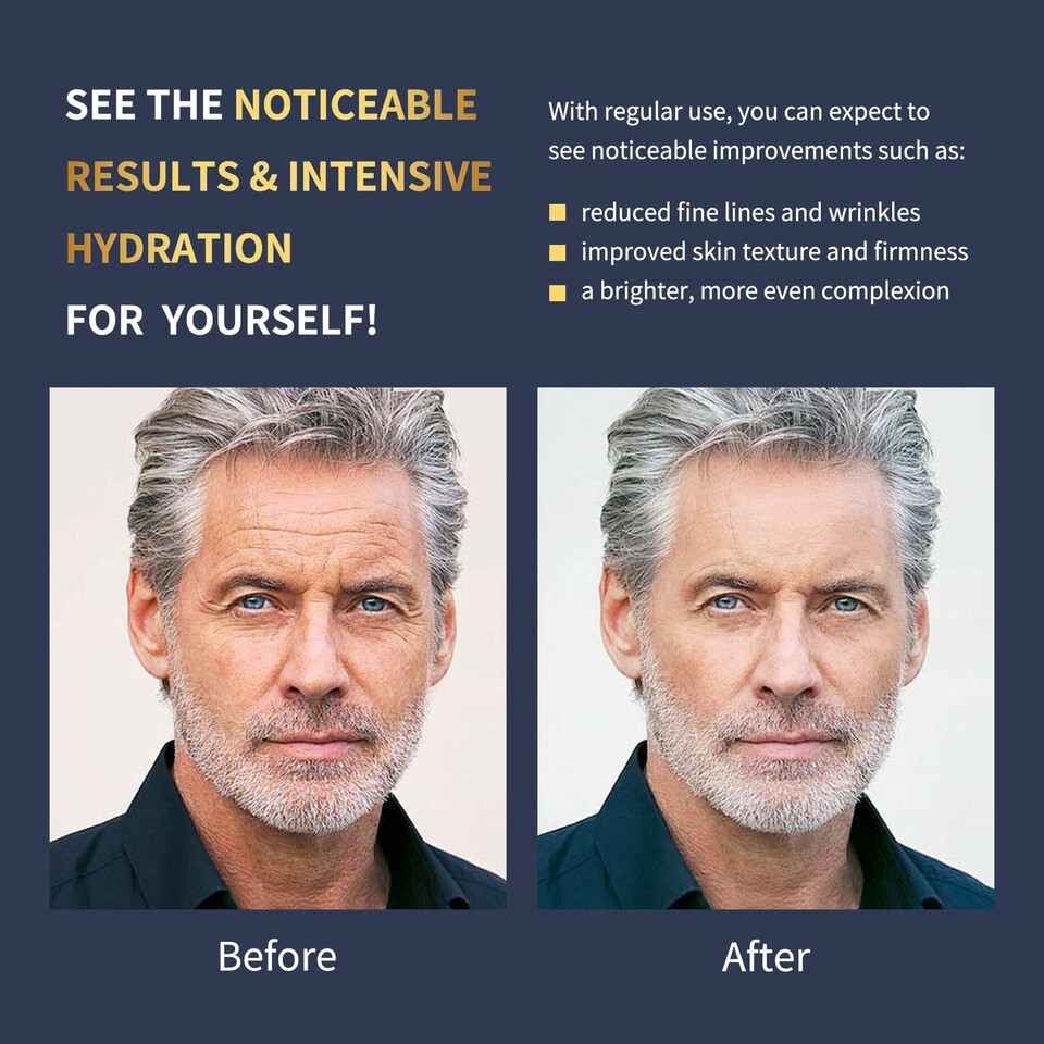 ?MENS SKIN CARE?Experience the ultimate men care with our Mens Face Cream, a facial moisturizer with retinol. This potent formula combines Hyaluronic Acid and Collagen for men's anti-aging benefits, ensuring deep moisturizing and unrivaled wrinkle resistance. The light formula of face moisturizer for men can be compared with face lotion.