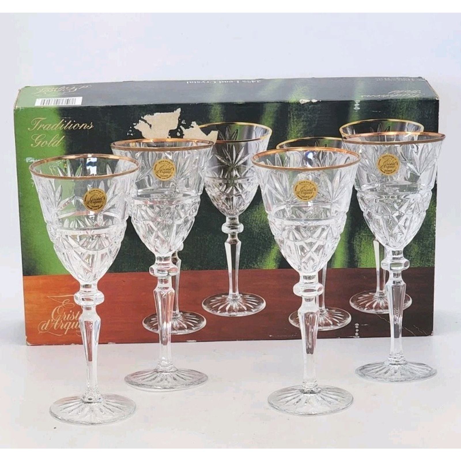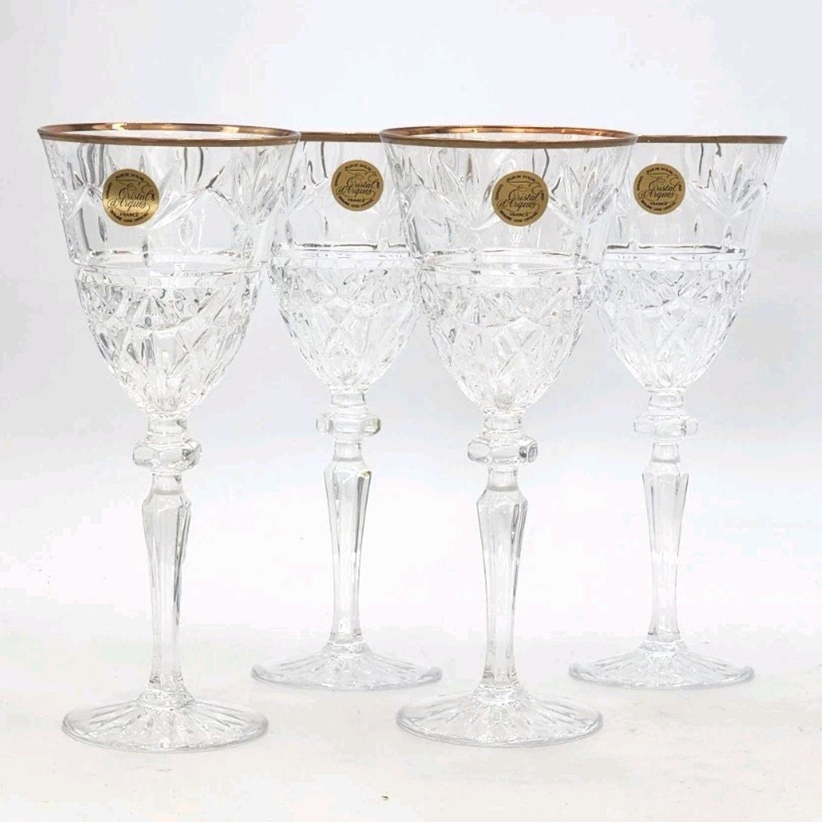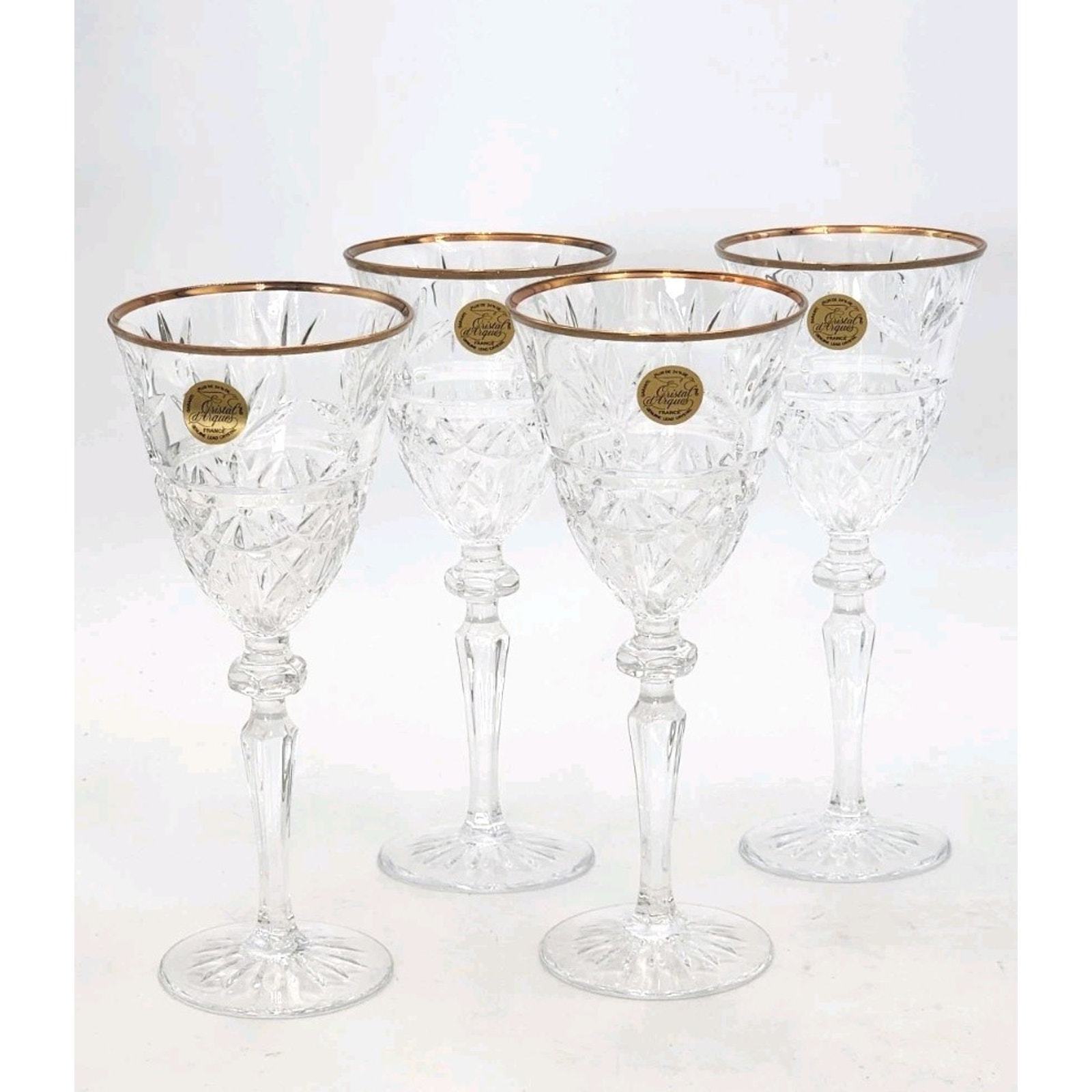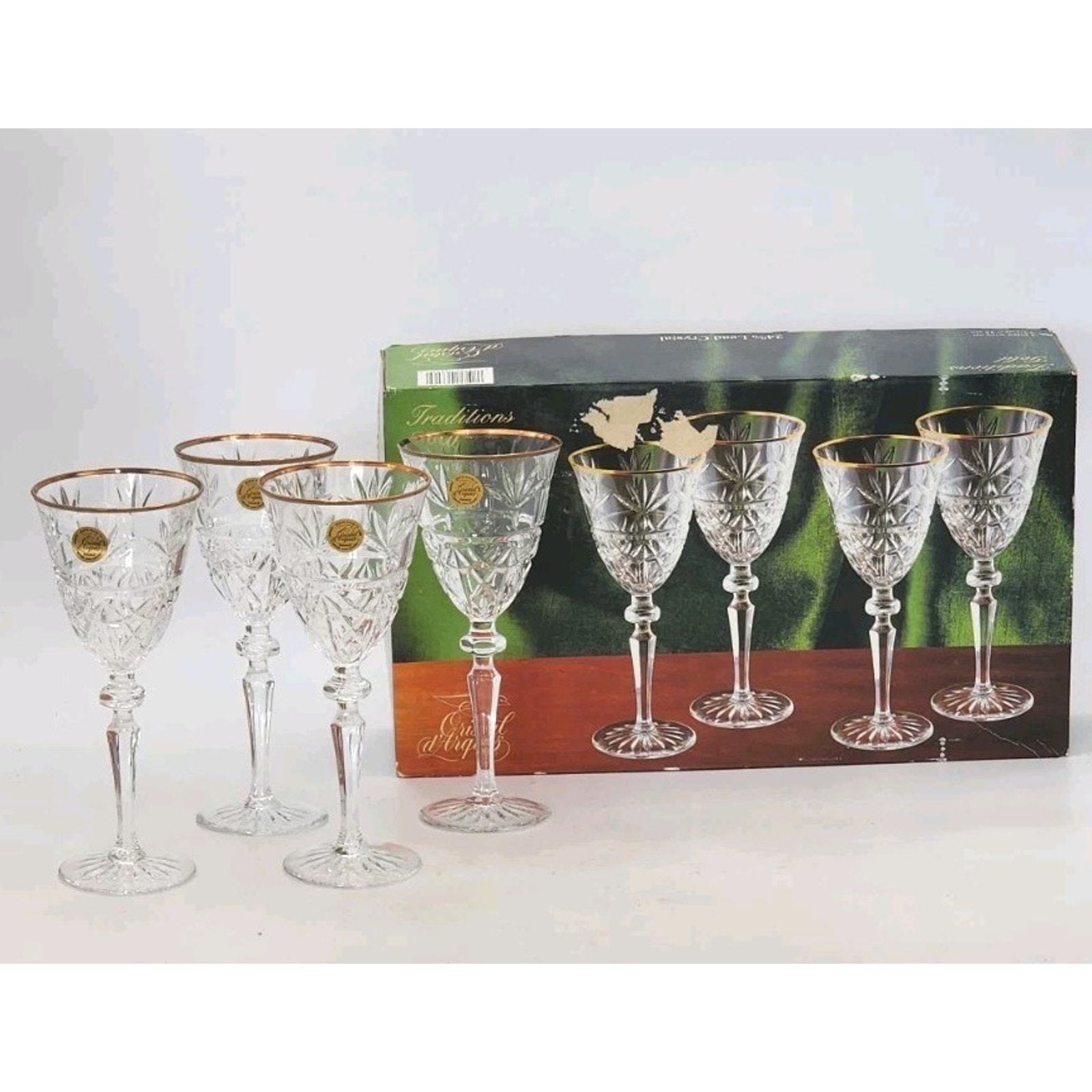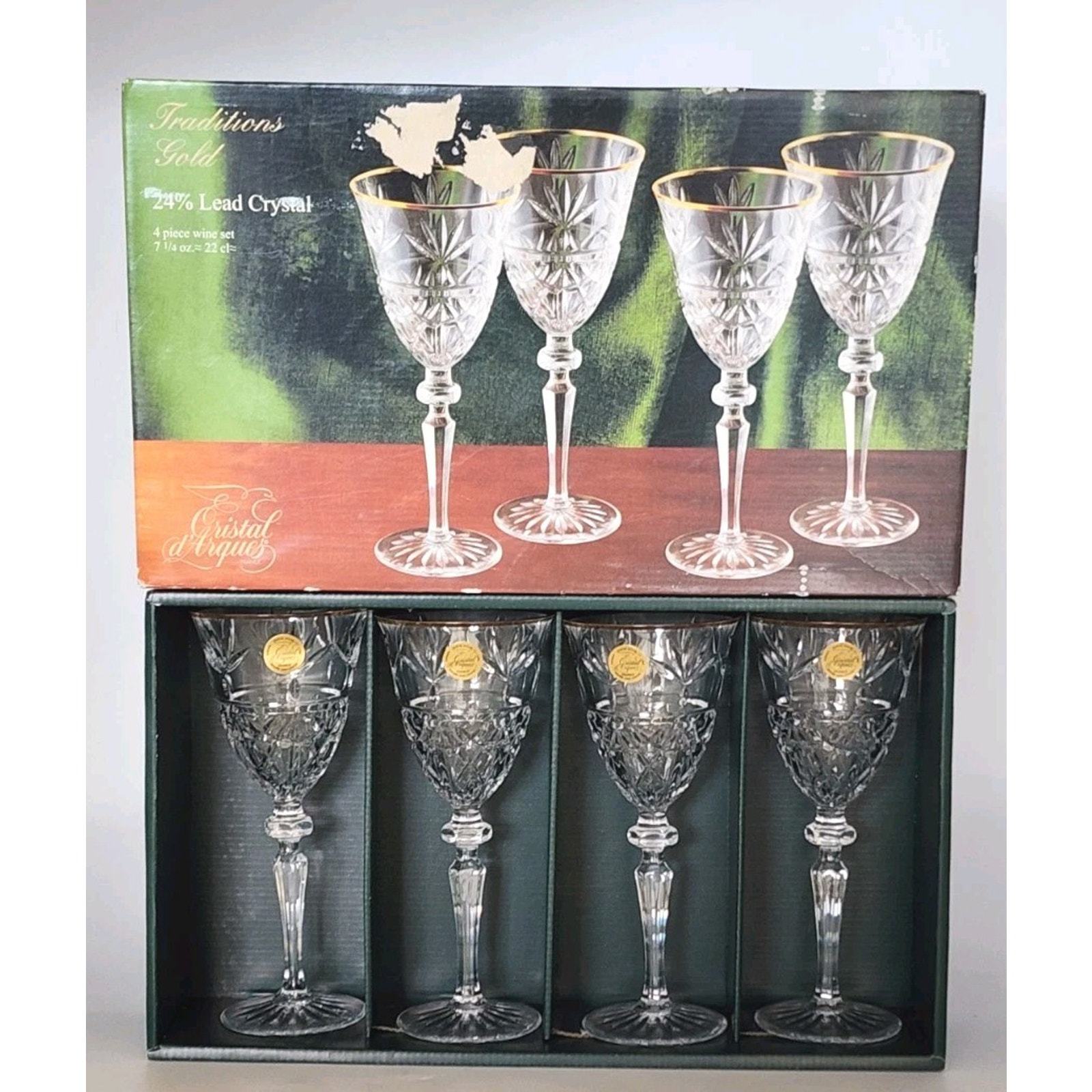 - Cristal D'Arques Traditions Gold 7 1/4 oz 4 Piece Wine Set 24% Lead Crystal New