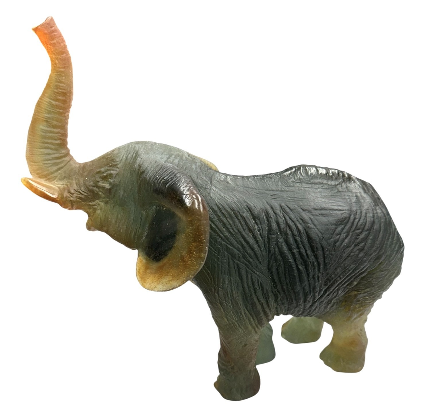 Type: CrystalBrand: Cristalerie DaumModel: 02417 Elephant Grand ModelColor: Green AmberSize: 9"Condition:UsedNotes:One of the tusks is broken off.