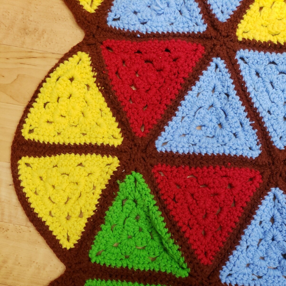 Crazy Quilt Triangle/Hexagonal Design~ kind of reminds me of a Stranger Things Pizza