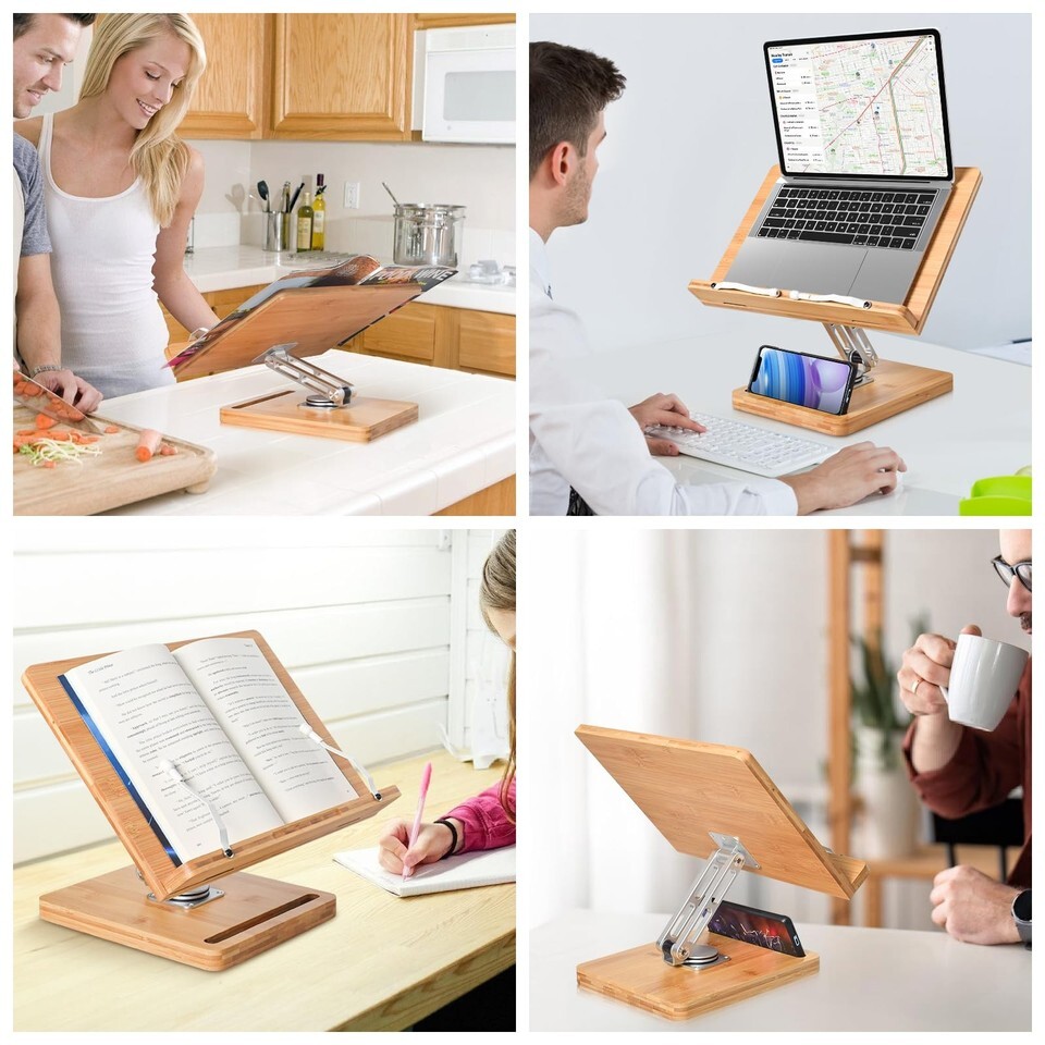 Aesthetic and Durable: Elevate your space with our bamboo wood book stand. The bamboo base adds natural warmth. Our book holder for reading combines aesthetics and durability.
