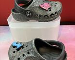 - Crocs Classic Glitter Clog Black Metallic Sparkle Sandals Kids Size 7C
