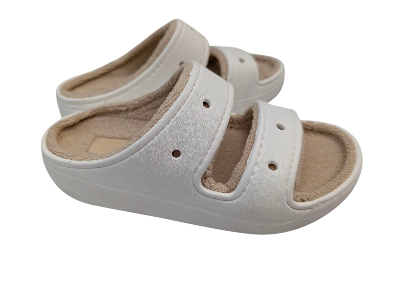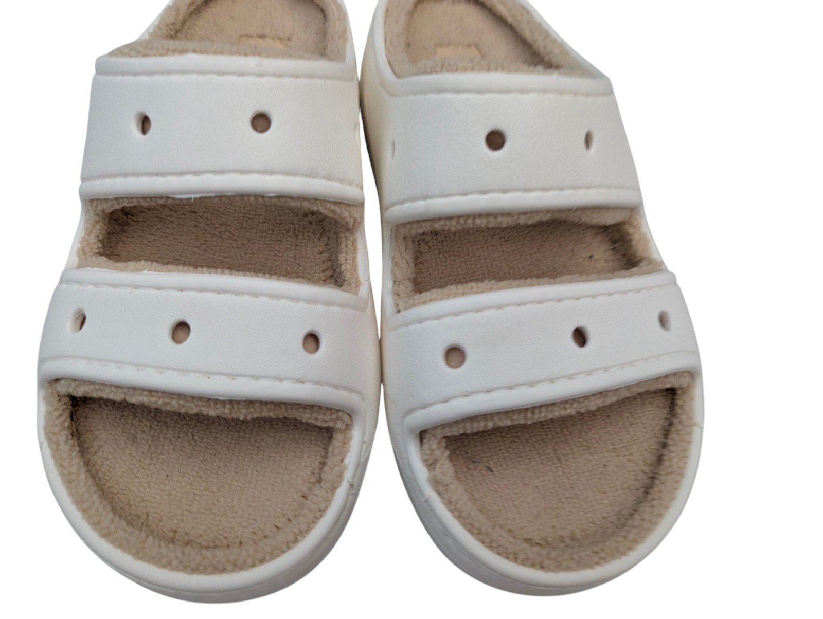 These are super cute Crocs cozy towel sandals. They are unisex style. Men's size 4 women's size 6. Off white with light tan towel inside. These shoes are honestly in MINT CONDITION!!! THEY LOOK LIKE BRAND NEW