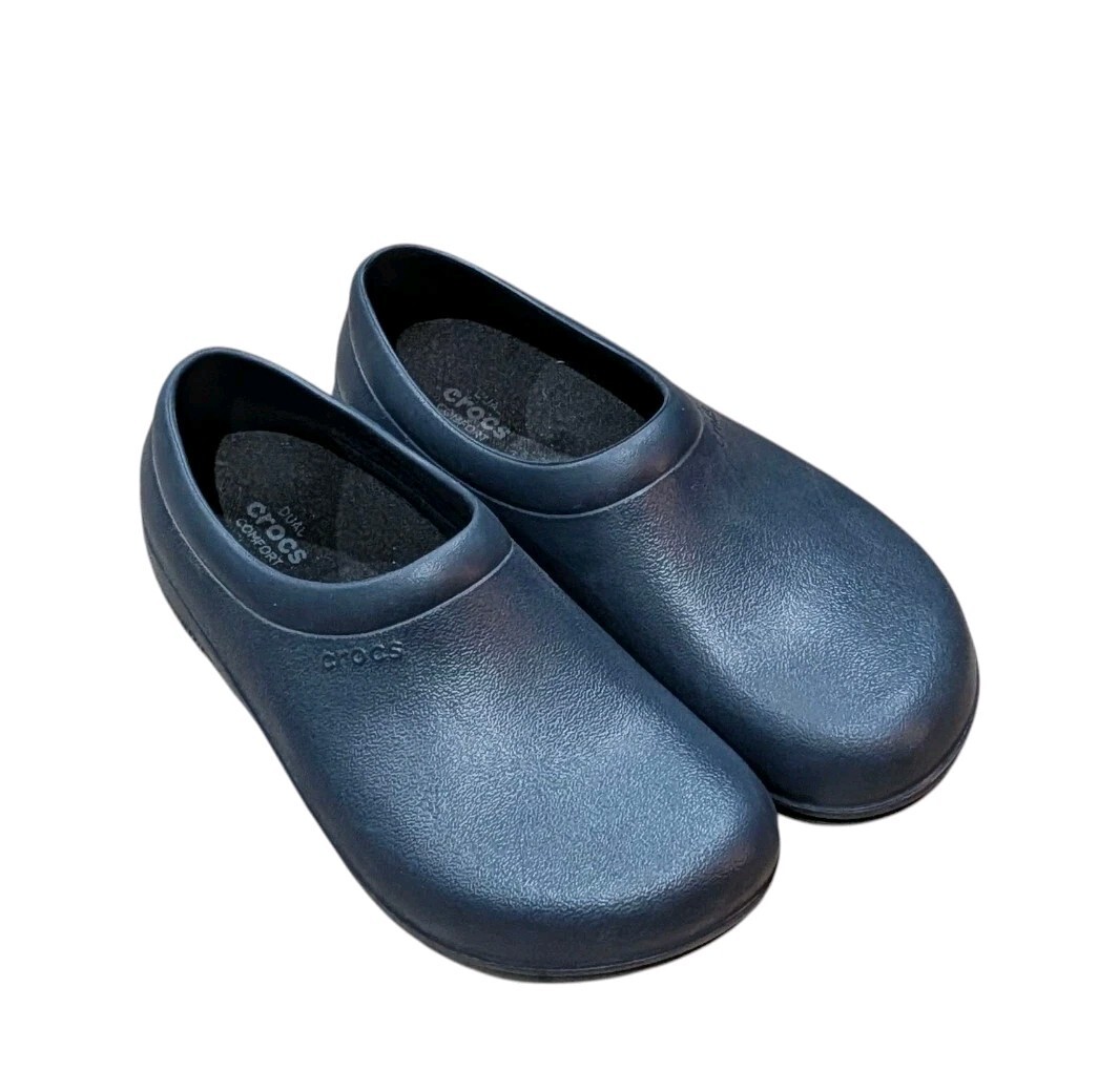 - Crocs On The Clock Work Shoes Skid Resistant Sole Men's 9 Women 11 Navy Blue
