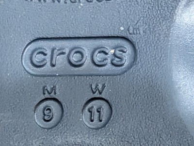 These are navy blue Crocs on the clock work shoes with a slip resistant sole. They are men's size 9 or woman size 11. Mint condition!