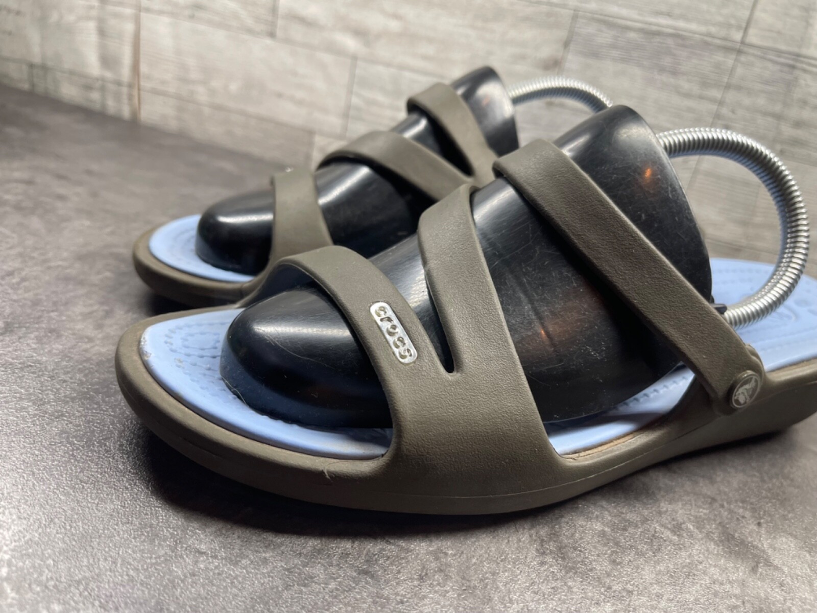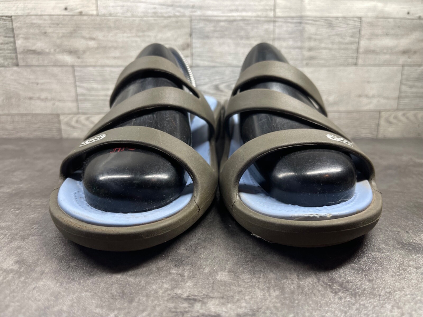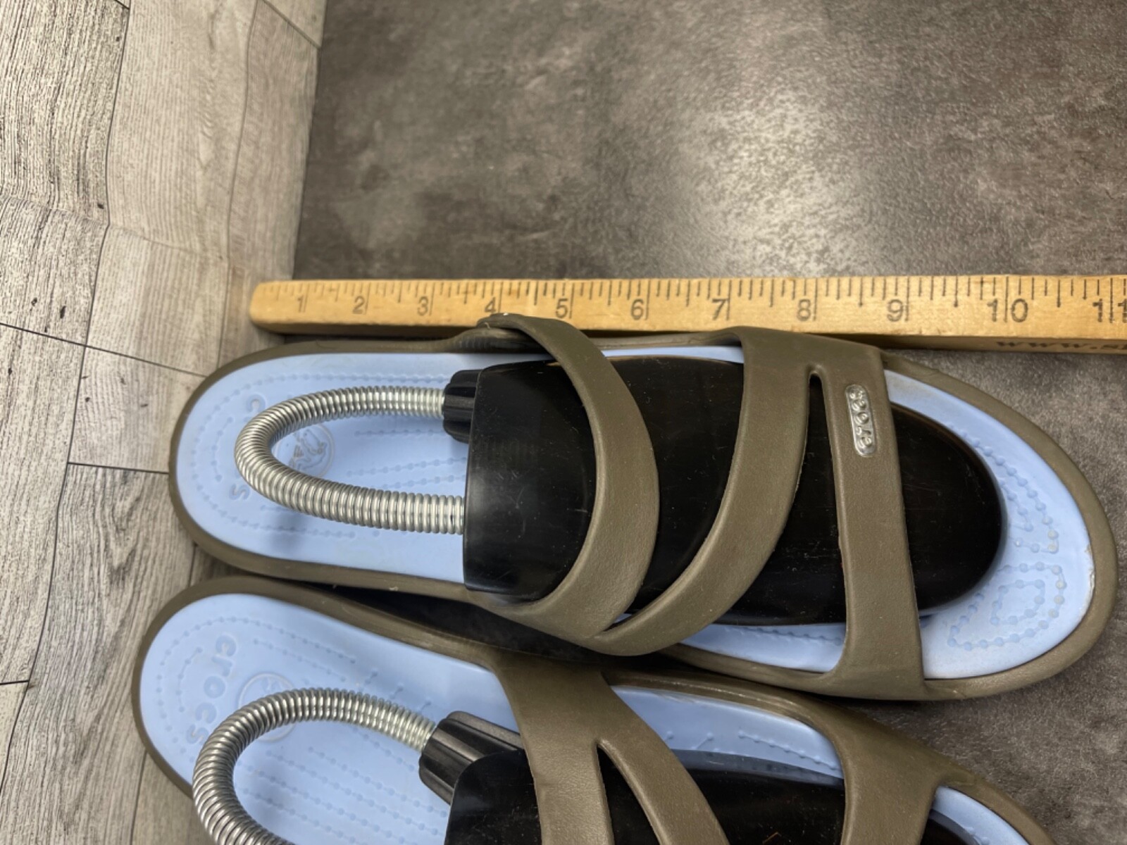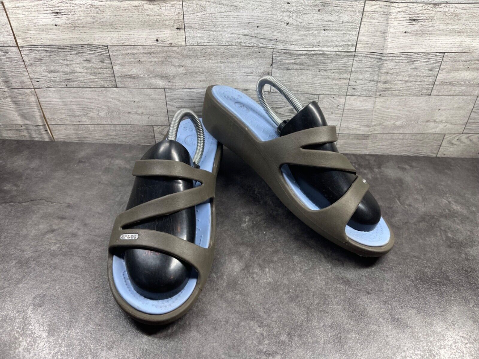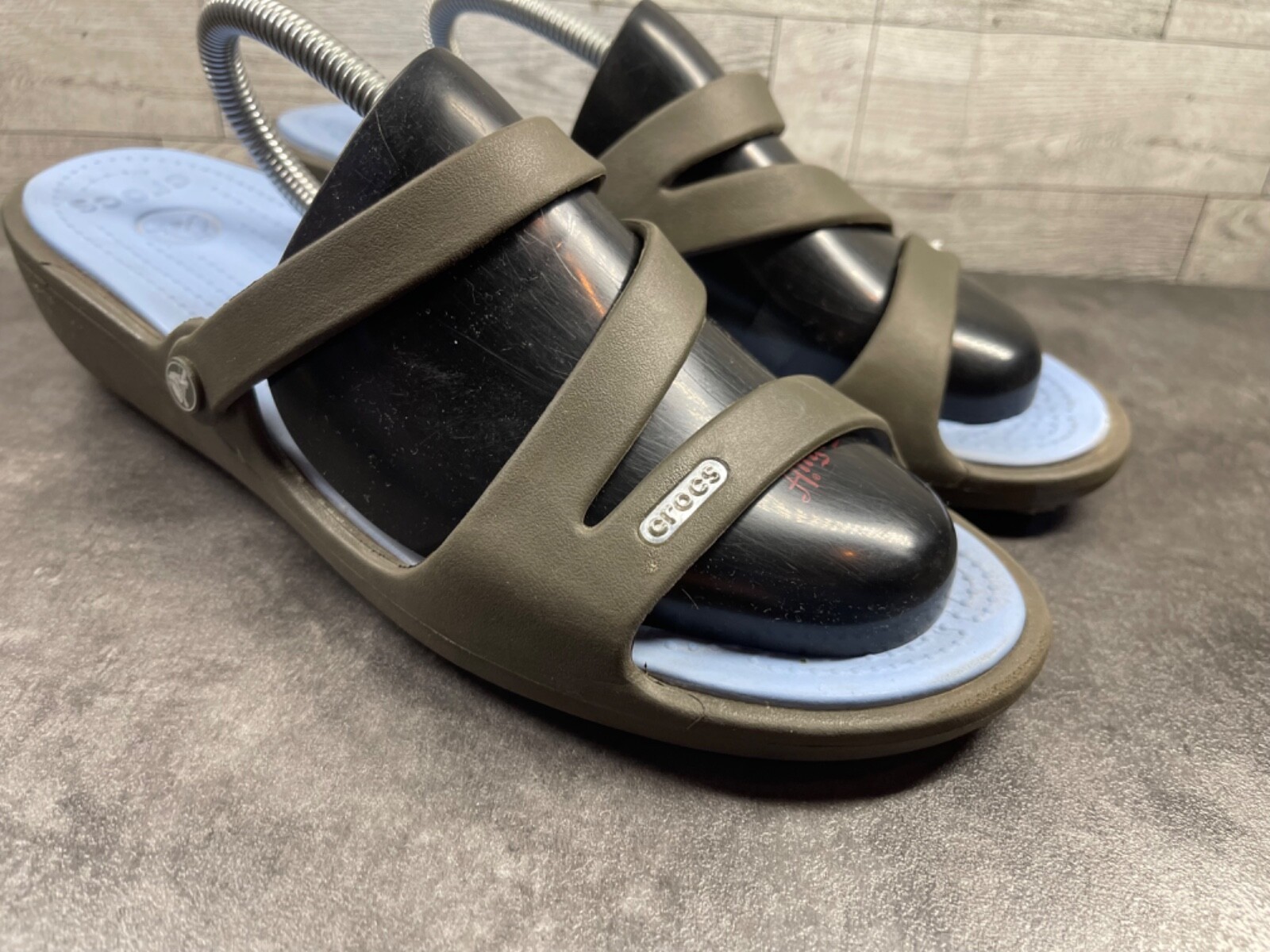 Crocs Sandals Slides Women 10M Patricia Shoes Brown Blue Strap Comfort Wedge