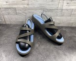 - Crocs Sandals Slides Women 10M Patricia Shoes Brown Blue Strap Comfort Wedge
