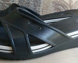 - Crocs Womens Size 8 Cyprus Wedge Sandals Black White Criss Cross Strap Slip On