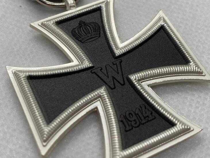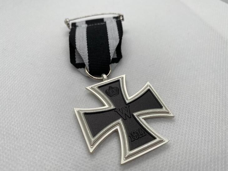 La replique de la Croix de fer 1914 est une medaille militaire fantastique meticuleusement concue qui rend hommage a l'une des decorations militaires les plus emblematiques de l'histoire. Etablie a l'origine par le roi Frederic-Guillaume III de Prusse en mars 1813, la Croix de fer a un riche heritage, decerne a la fois au personnel militaire et aux civils pour leur service distingue. Cette replique commemore le design et l'importance de la croix de fer telle qu'elle a ete emise pendant la Premiere Guerre mondiale. La croix de fer 1914 presente le design classique avec une finition noire frappante et d'elegants contours blancs ou argentes, refletant ses racines historiques derivees du brevet de croix de l'ordre teutonique. Le ruban de la medaille est un riche noir orne de deux fines rayures blanches, symbolisant les couleurs de la Prusse. Cette replique est non seulement une piece decorative, mais aussi un objet de collection qui incarne une partie essentielle de l'histoire militaire. Celebree pour son importance, environ 218 000 de la Croix de fer de 1re classe et 5 196 000 de la Croix de fer de 2e classe ont ete decernees pendant la Premiere Guerre mondiale, ce qui temoigne de son importance dans la reconnaissance de la valeur et du service.Cette replique de haute qualite est parfaite pour les collectionneurs, les amateurs d'histoire ou pour ceux qui cherchent a honorer la memoire de ceux qui ont servi. Qu'elle soit exposee dans une collection ou portee lors d'occasions speciales, la replique de la Croix de fer 1914 est un symbole de bravoure, de sacrifice et du riche heritage militaire qui definit notre passe.