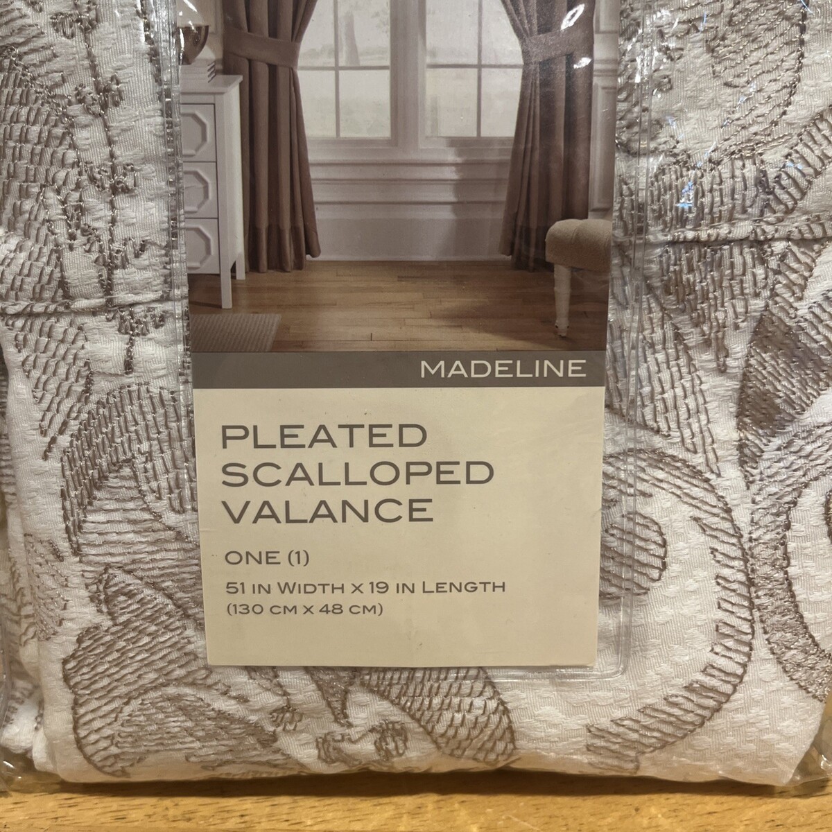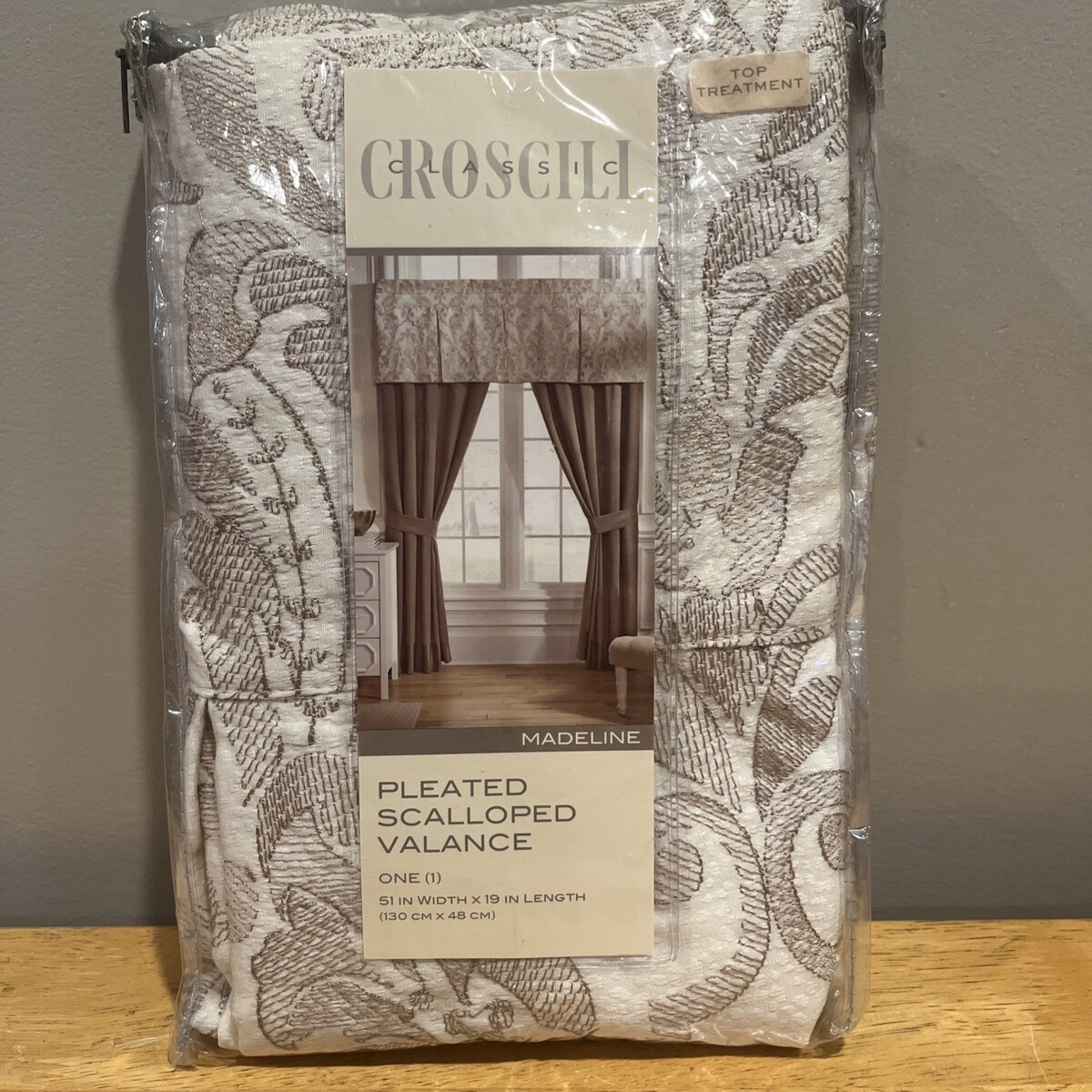 - Croscill Madeline Pleated Scalloped Valance Ivory Embroidered 51x19" Vtg