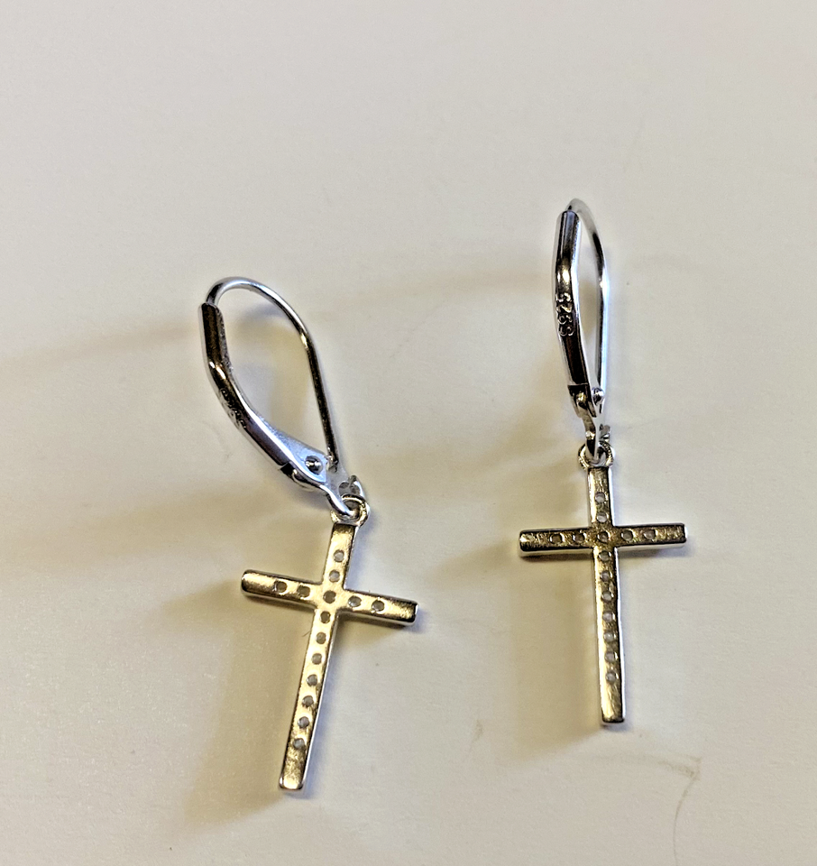 Your purchase is for a pair of small cross sterling silver drop earrings. They are very nice and a perfect way to show your devotion and gratitude to Our Lord Jesus Christ.
