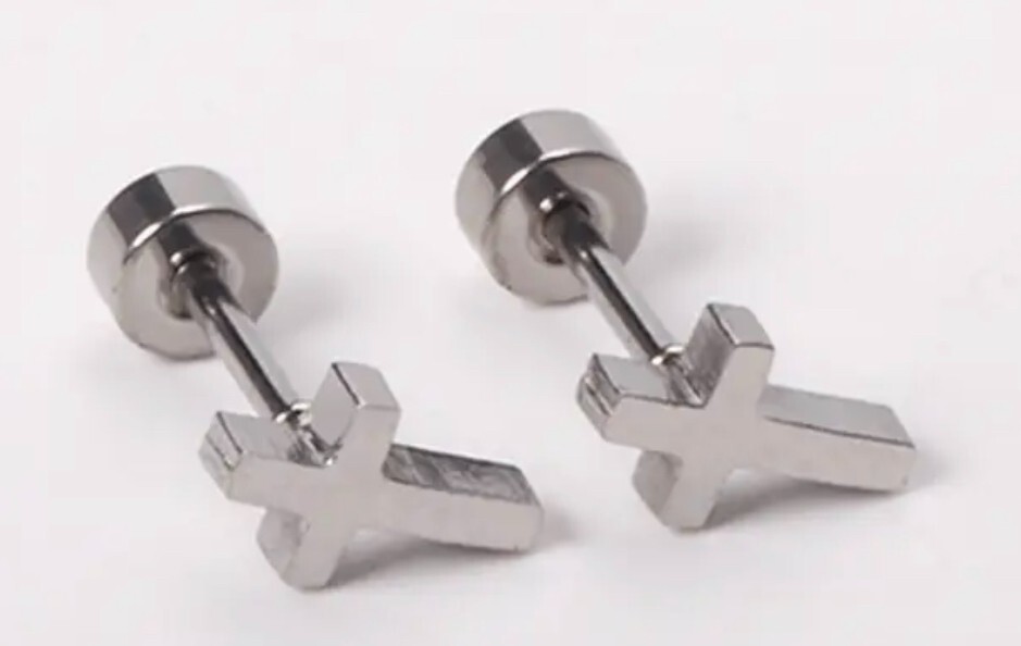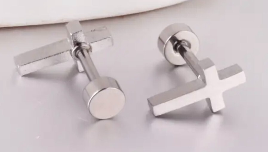 Cross Stud 10mm Earrings, New #AB-381-R2
