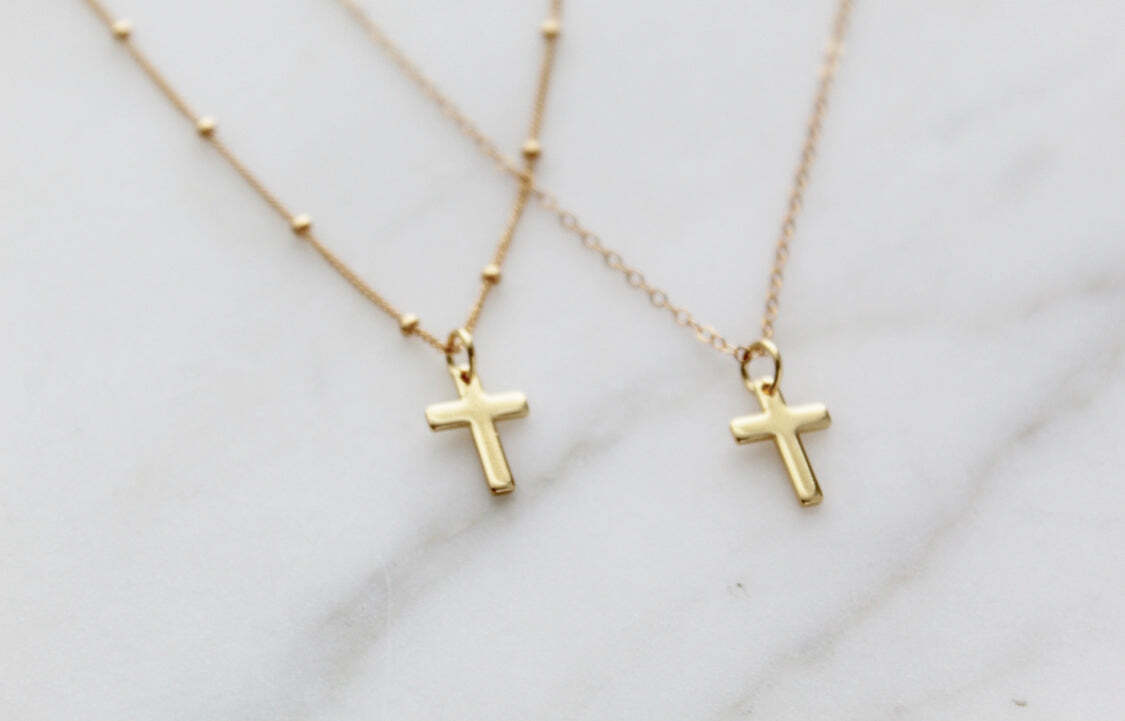 A timeless expression of faith, this delicate gold-filled cross necklace is perfect for daily wear or as a meaningful gift.