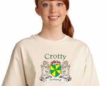 Crotty Irish Coat of Arms Tee Shirt in NaturalEvery Irish family has a story to tell, probably hundreds of stories. Your Irish coat of arms is a visual record of your family's oldest, most significant stories. Here, they're told in bright, permanent artwork on these fine-quality, all-cotton tee shirts. Authentic Irish Family Coat of Arms 100% Cotton Gildan Tee Shirt Over 25 years of Heraldry Research Printed with four color permanent process(no cracking or peeling-guaranteed) Choose from over 1000 available family coat of arms.