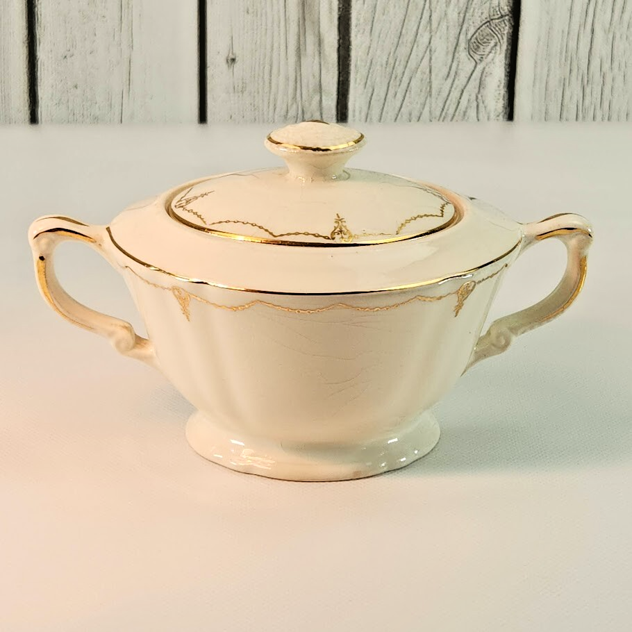 Crown Potteries Creamer & Sugar Gold Swag Medallion Quiet Elegance