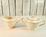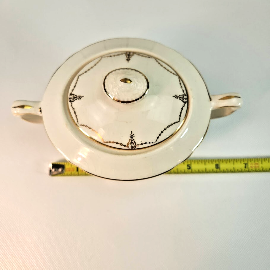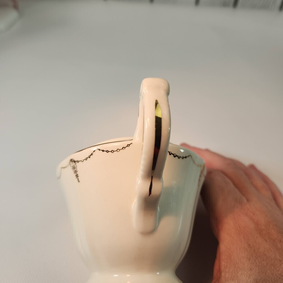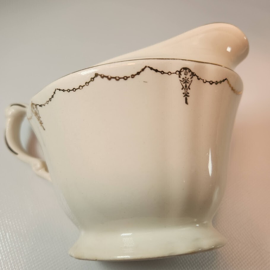- Crown Potteries Creamer & Sugar Gold Swag Medallion Quiet Elegance