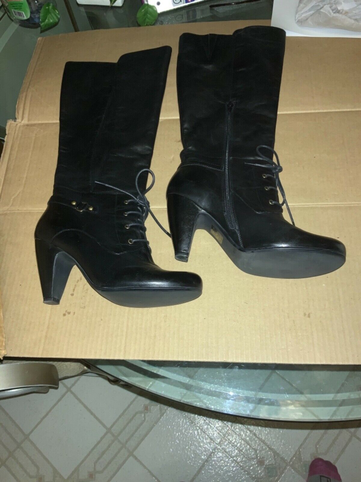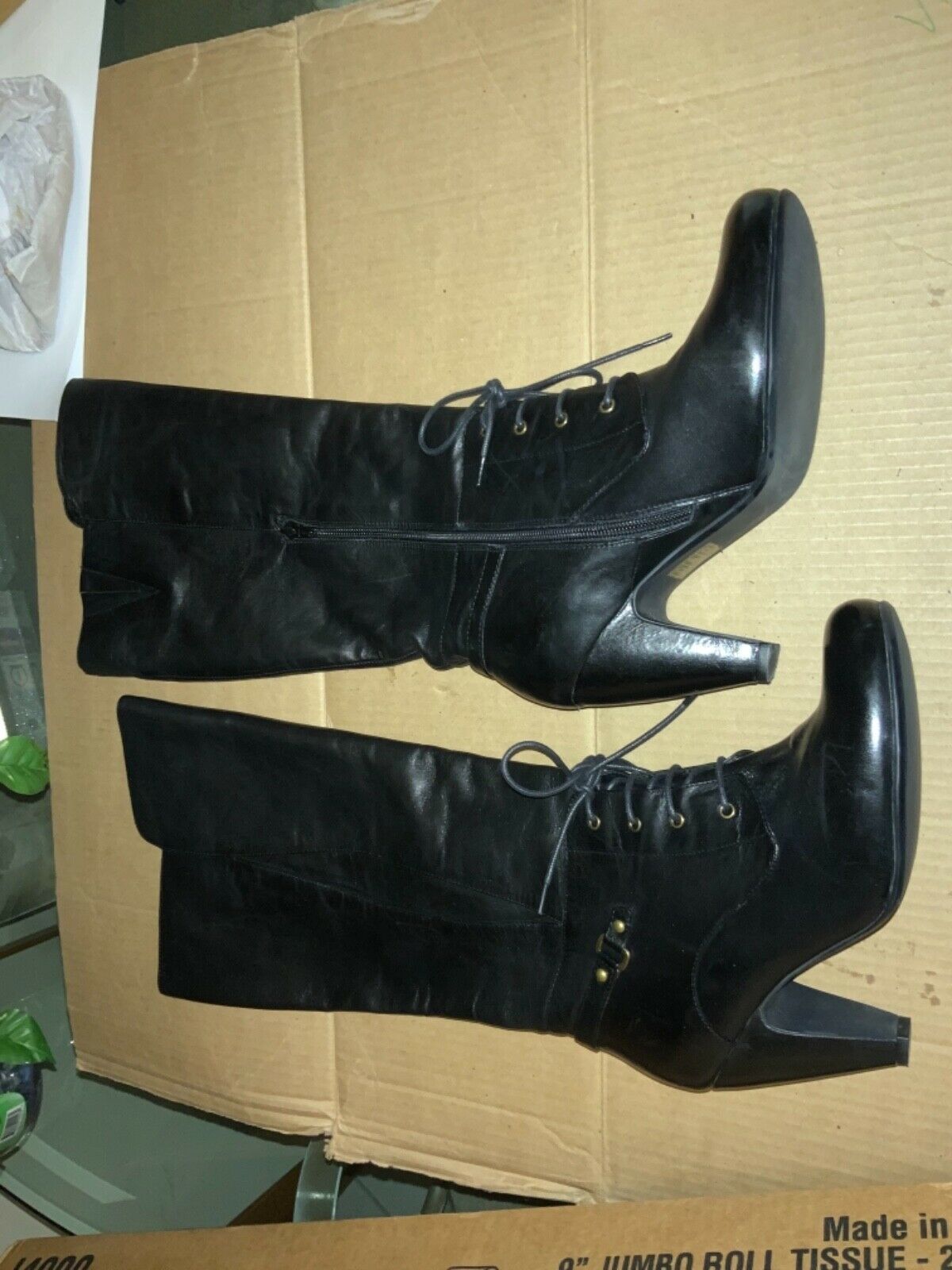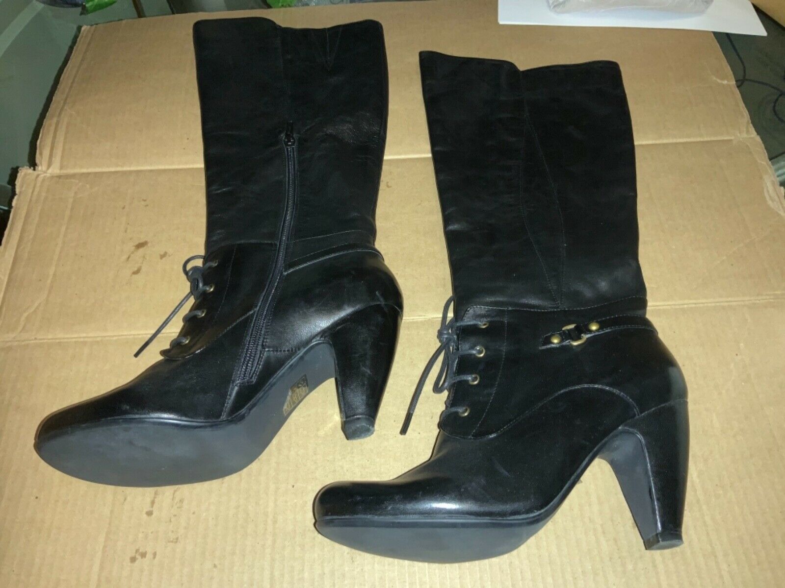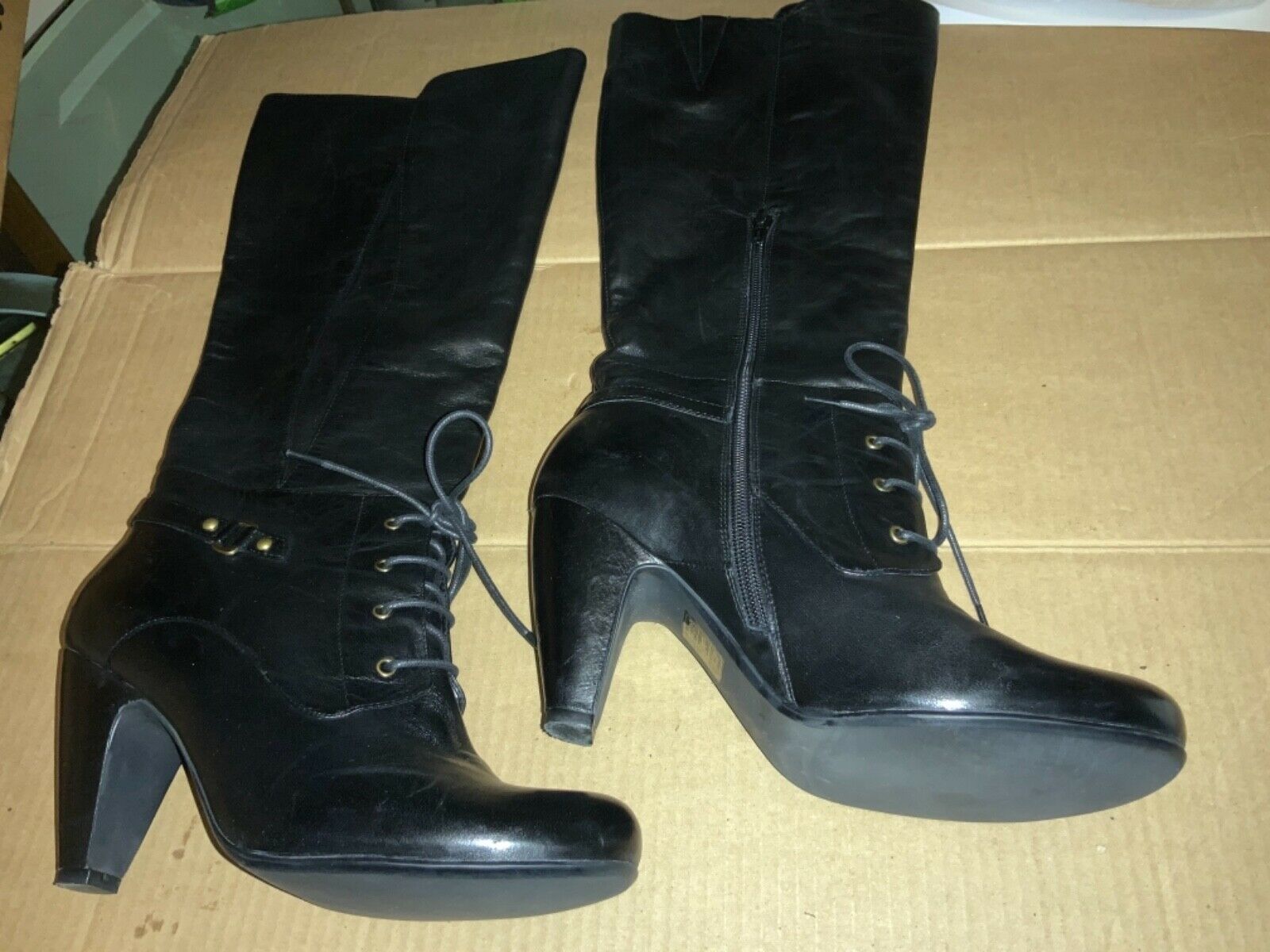 - Crown Vintage Womens Tall Black Leather Lace Up Boots Size 9