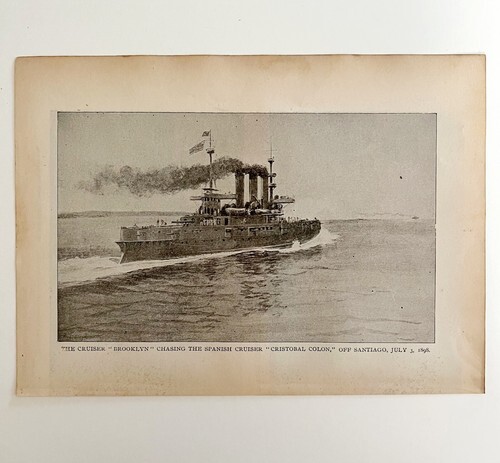 - Cruiser Brooklyn Chasing Cristobal Colon Santiago 1899 Victorian Print DWV7B