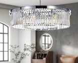 Crystal Chrome Chandelier Modern Chandeliers Lighting Pendant Ceiling Light Fixture 2-Tier for Dining Room Living Room Kitchen Island W21.6
