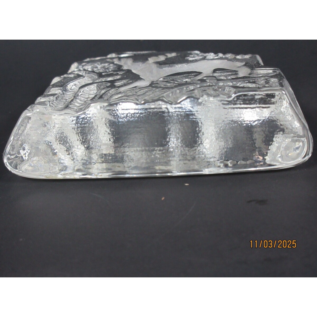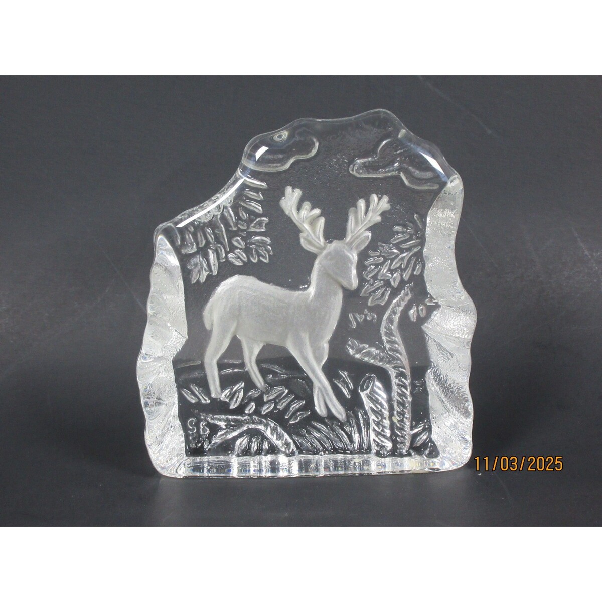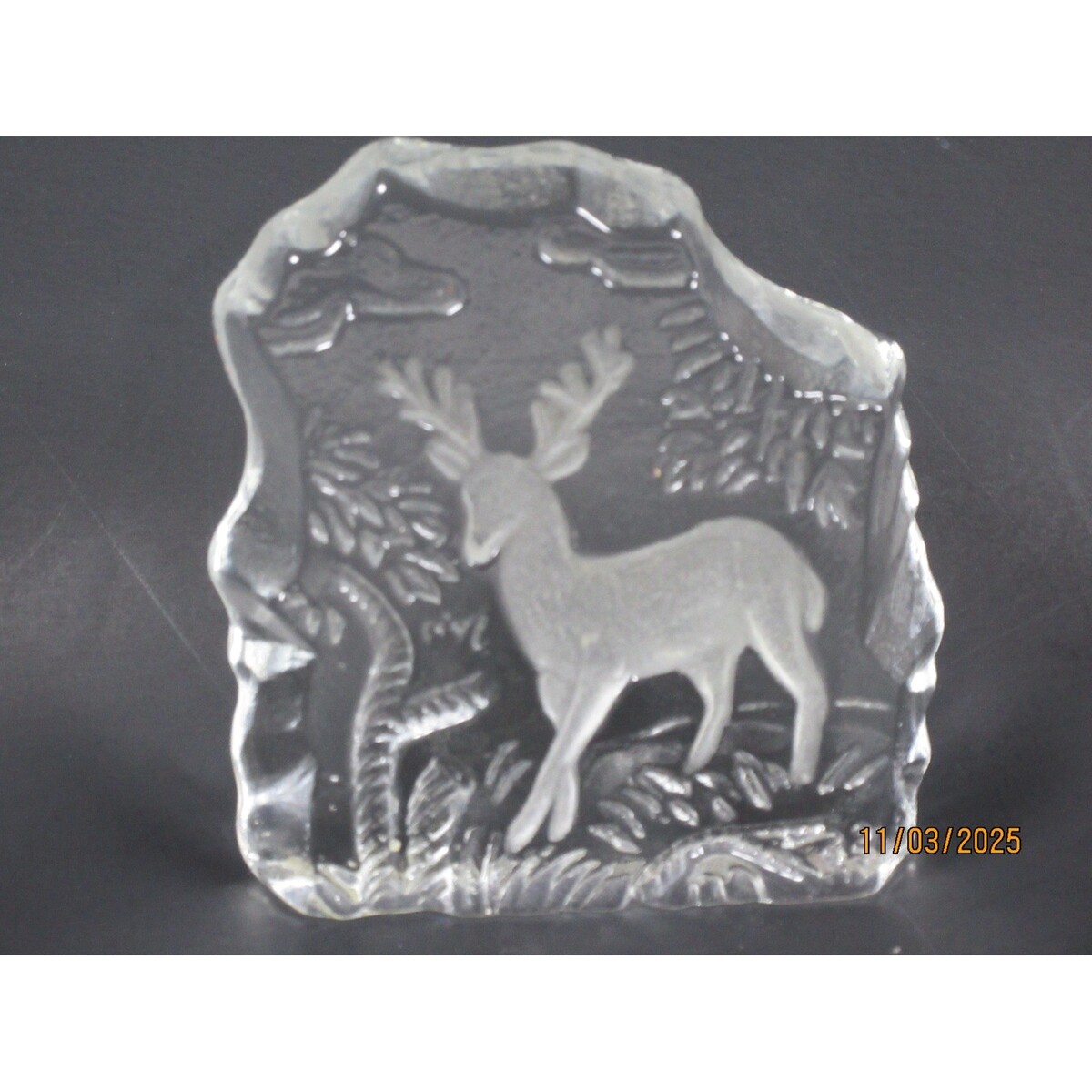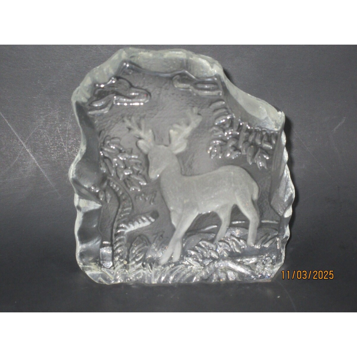 - Crystal Deer Forest Scene Sculpture Art Glass Figurine Paperweight Decor 1.5lb.