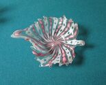 CRYSTAL VENETIAN VANITY DISH LEAF SHAPED PINK AND WHITE WAVED ROPED DESIGN 1 X 5 1/2 X 4" VERY GOOD CONDITION, SOME LIGHT SURFACE SCRATCHES COMMENSURATE WITH AGE BOHEMIANBSKTRACK2RIGHT
