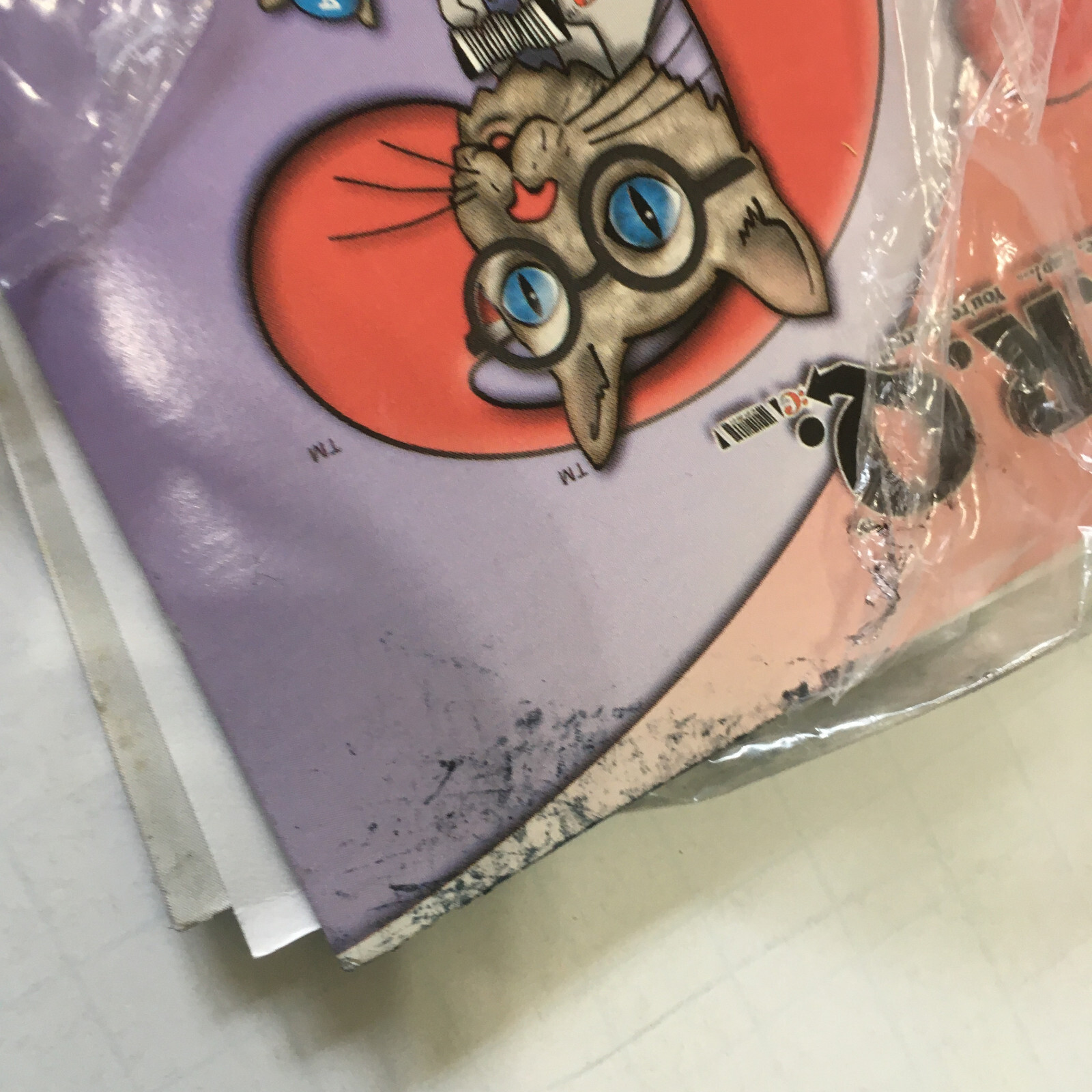 preowned opened package with some staining on the plastic and disk sleeve (see pictures) item is preowned but never used.