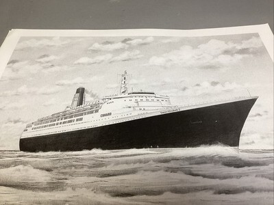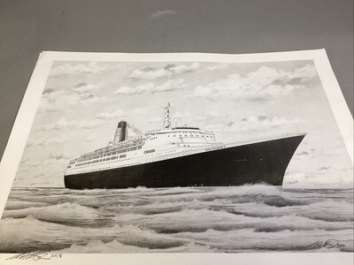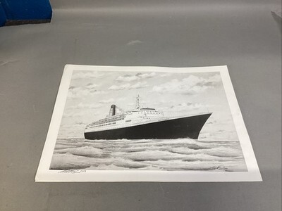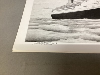 Queen Elizabeth 2 Ship Art Print - 16x12?. In good condition. Signed in 2018. Looks like the original print was from 2016 and signed at that time too.