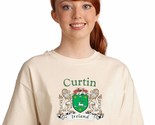 Product description: Curtin Irish Coat of Arms Tee Shirt in NaturalEvery Irish family has a story to tell, probably hundreds of stories. Your Irish coat of arms is a visual record of your family's oldest, most significant stories. Here, they're told in bright, permanent artwork on these fine-quality, all-cotton tee shirts. Authentic Irish Family Coat of Arms 100% Cotton Gildan Tee Shirt Over 25 years of Heraldry Research Printed with four color permanent process(no cracking or peeling-guaranteed) Choose from over 1000 available family coat of arms.