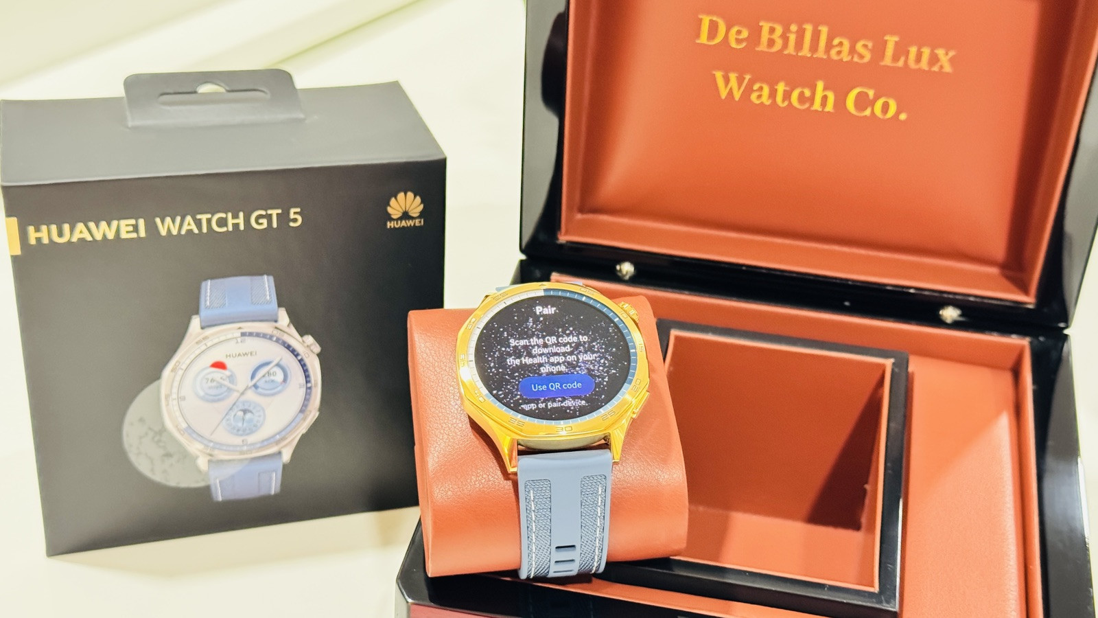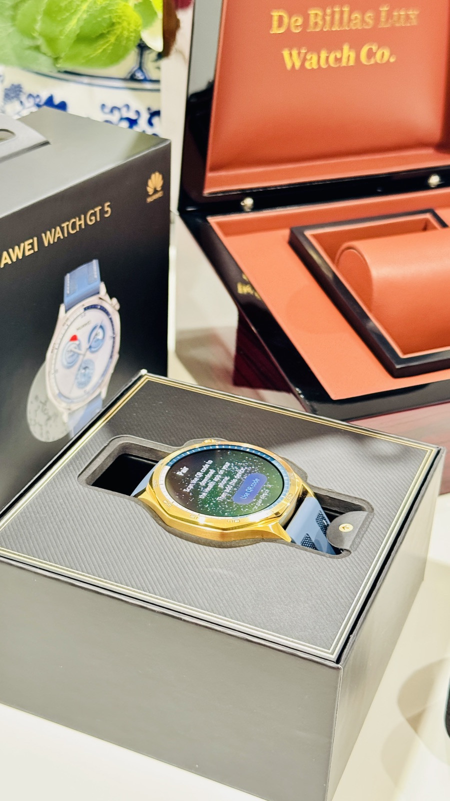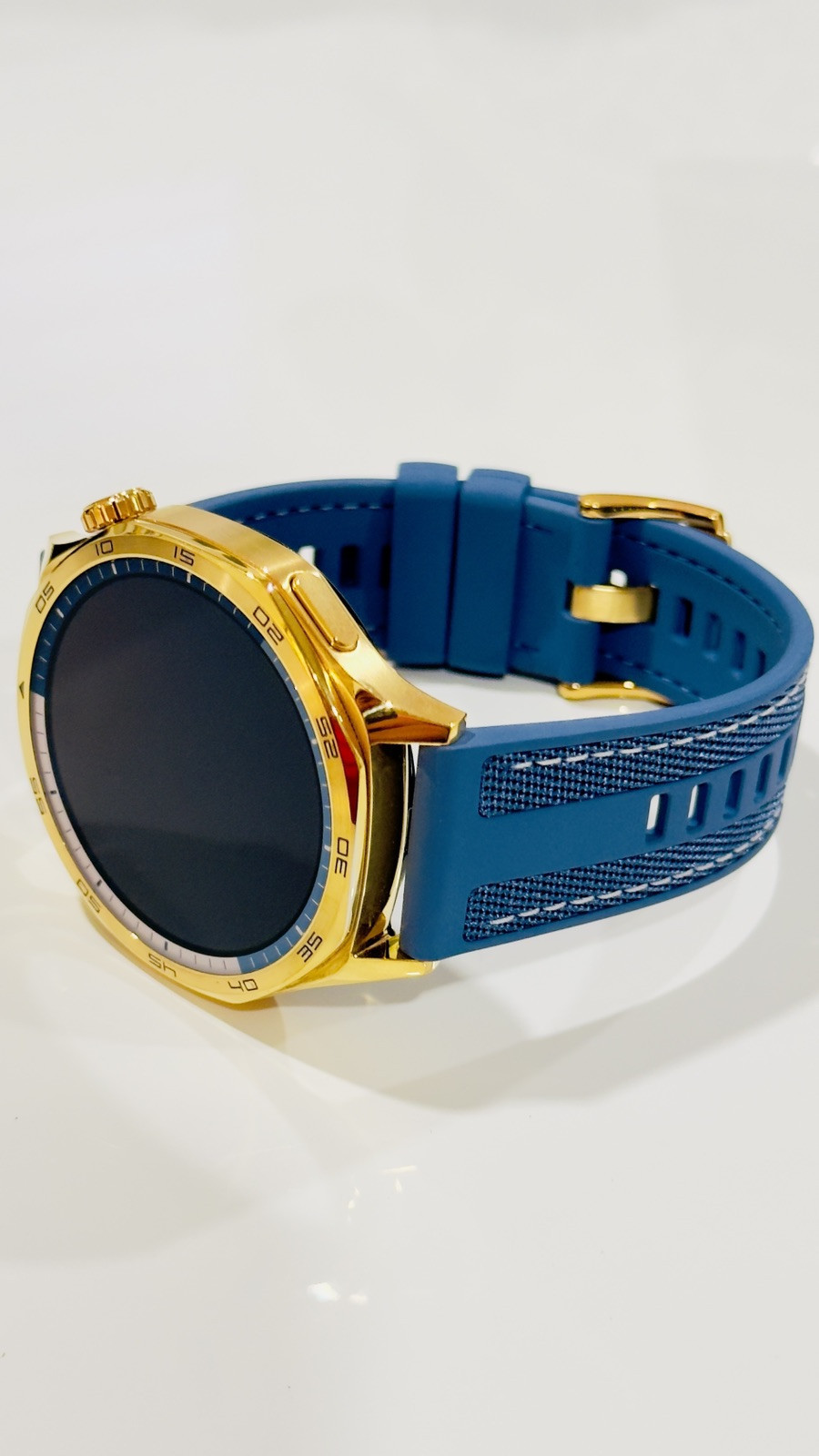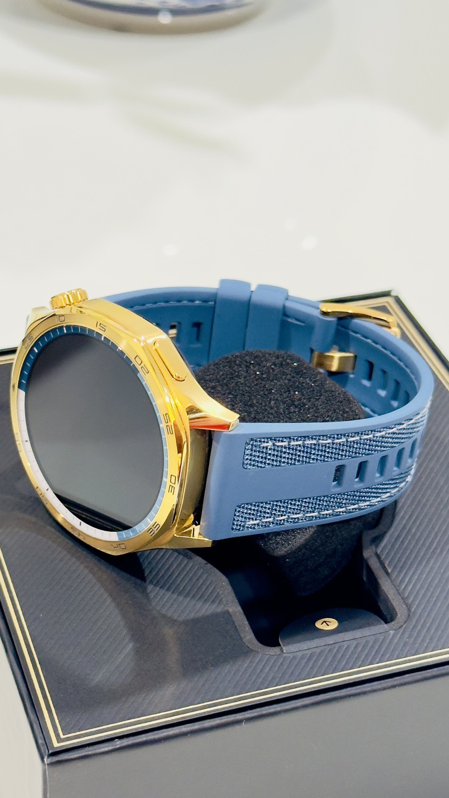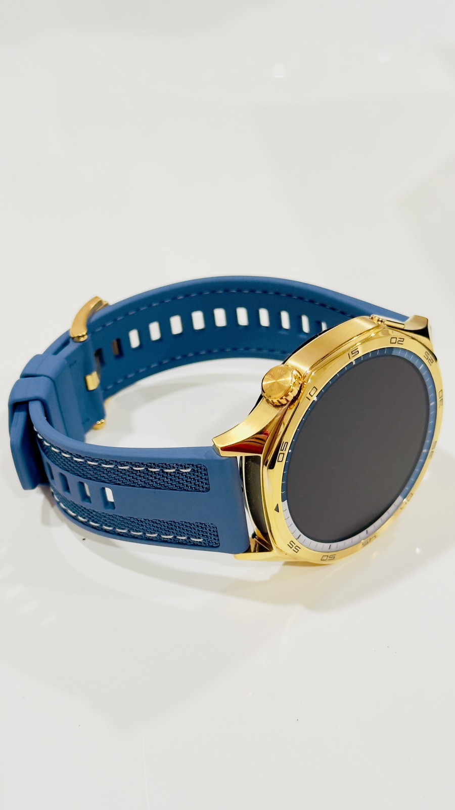 - Custom 24k Gold Plated 46mm Huawei GT 5 Pro Watch Blue Band 2024 Release